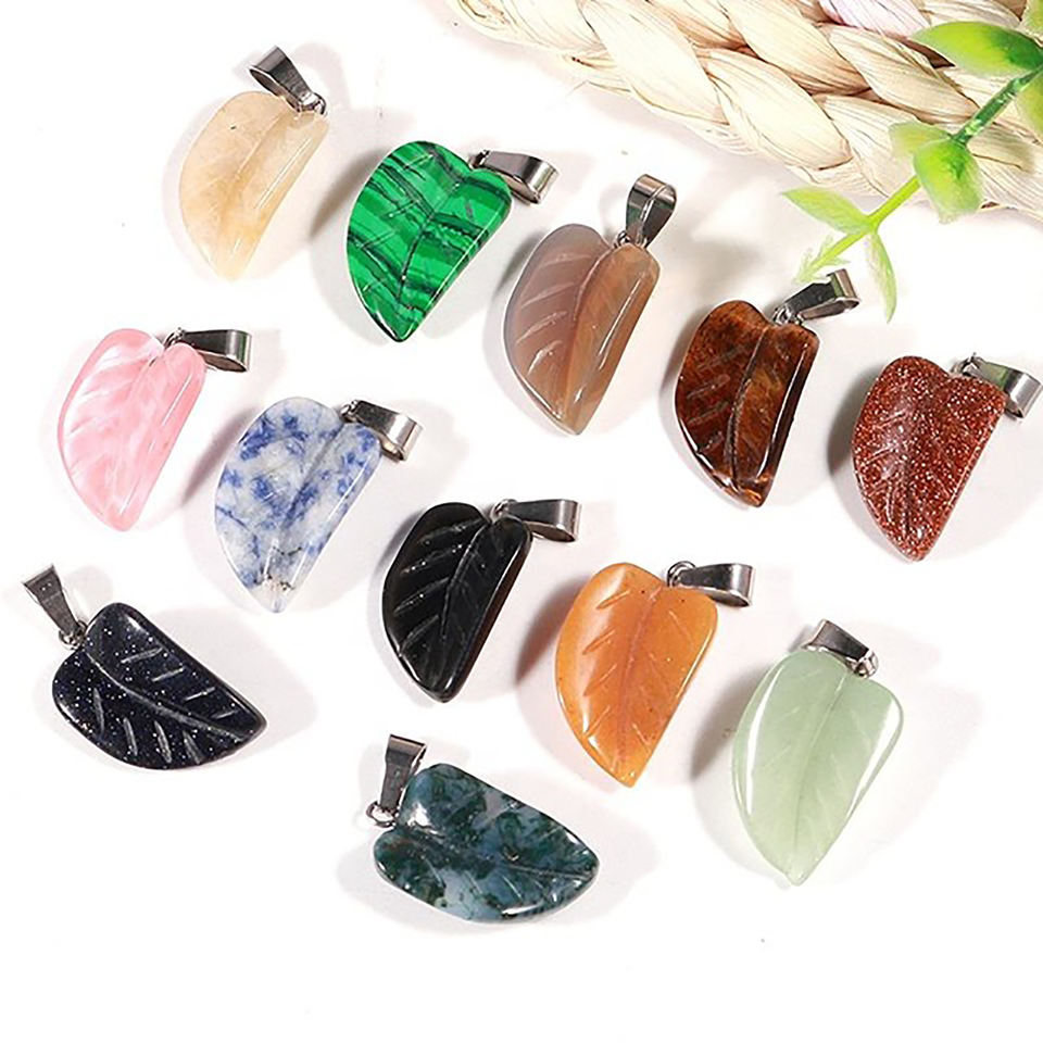 จี้อัญมณีควอตซ์แกะสลักรูปใบไม้เงิน925ทำด้วยมือสไตล์คริสเตียนโบฮีเมียนจี้สำหรับงานแต่งงาน