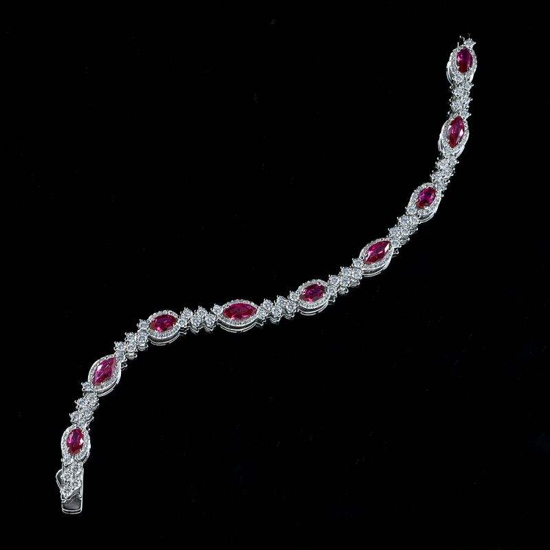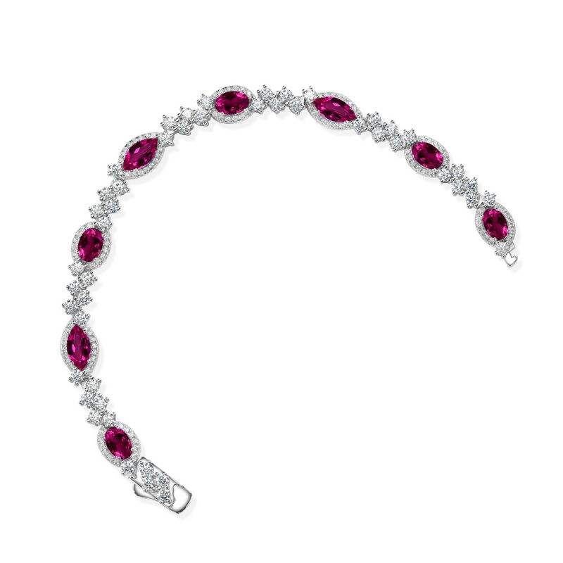 925 เงินสเตอร์ลิงใบโรมันCubic Z Irconiaสร้อยข้อมือเทนนิสMarquise Cutทับทิมสร้อยข้อมือเทนนิสสําหรับเจ้าสาว