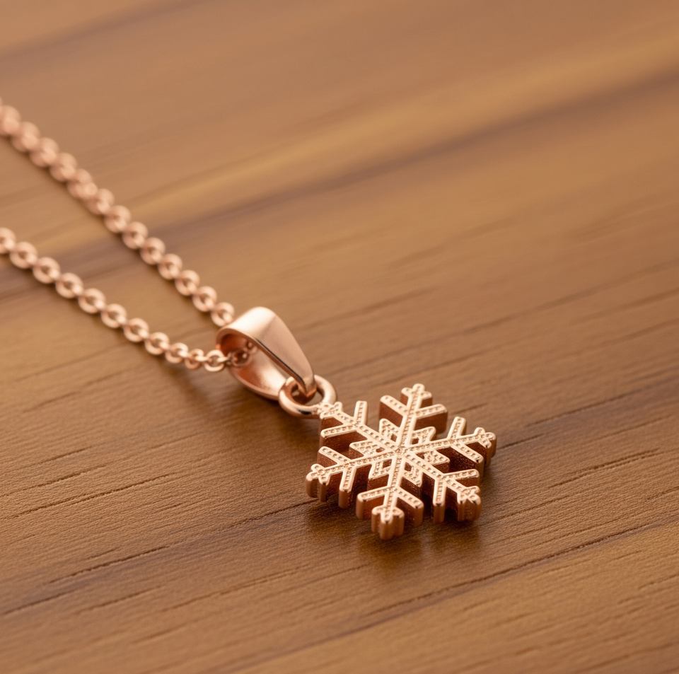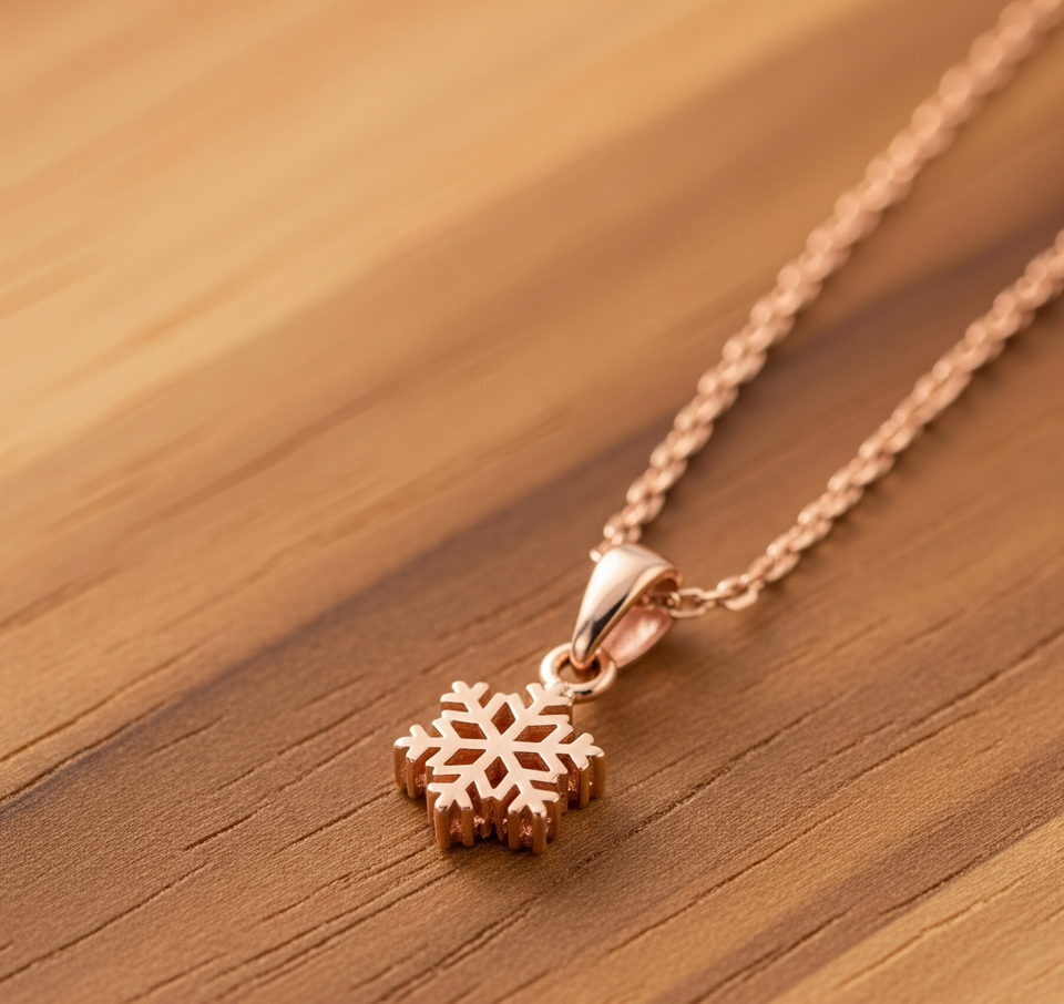 สร้อยคอโซ่เงินแท้925จี้เกล็ดหิมะสีโรสโกลด์ชุบคุณภาพดีสำหรับปาร์ตี้ของขวัญคริสเตียน