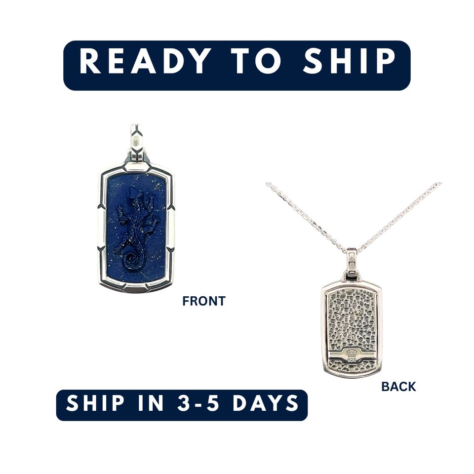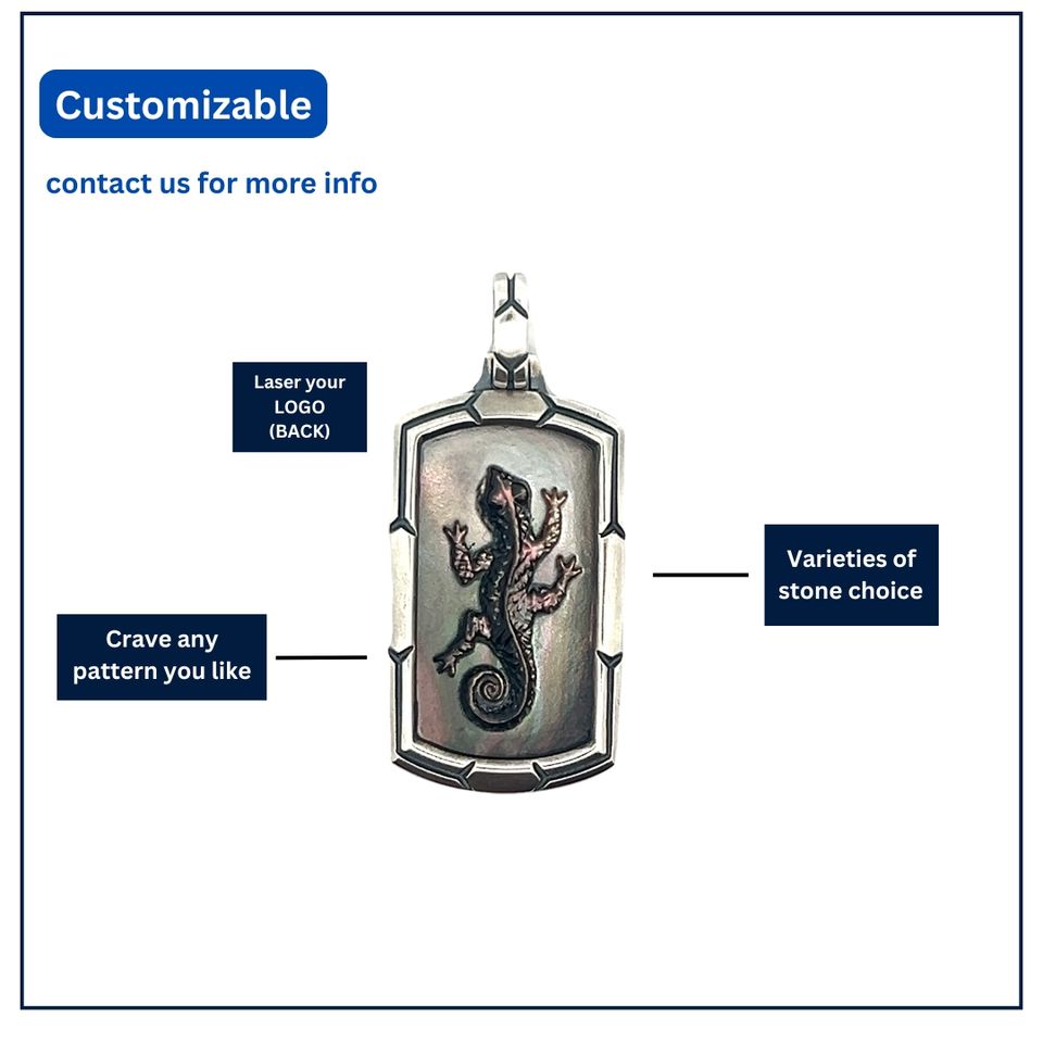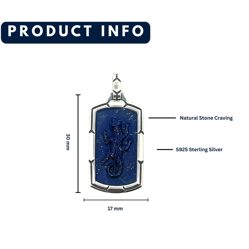 จี้เงินแท้ 925 รูปจิ้งจก | จี้หินลาพิส ลาซูลีทรงกลมธรรมชาติ | เครื่องประดับผู้ชายแบบกำหนดเองตามสั่ง (OEM) | ขั้นต่ำ 1 ชิ้น