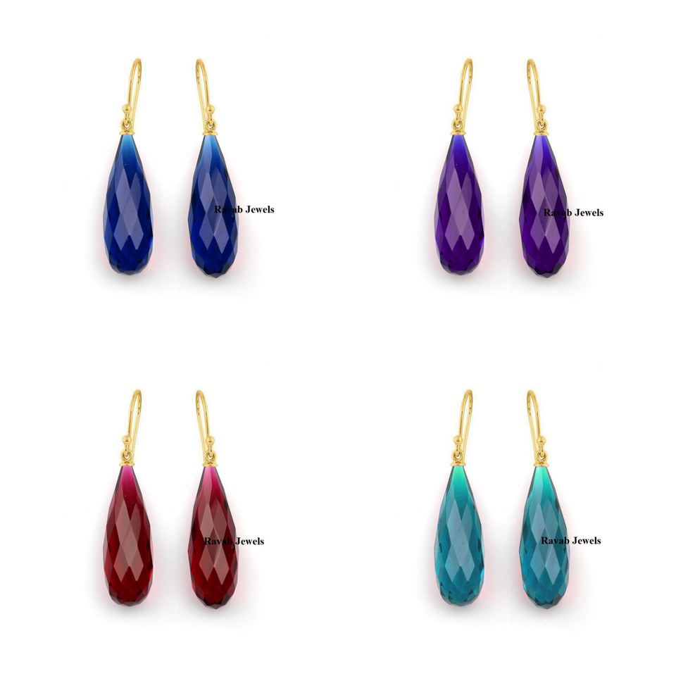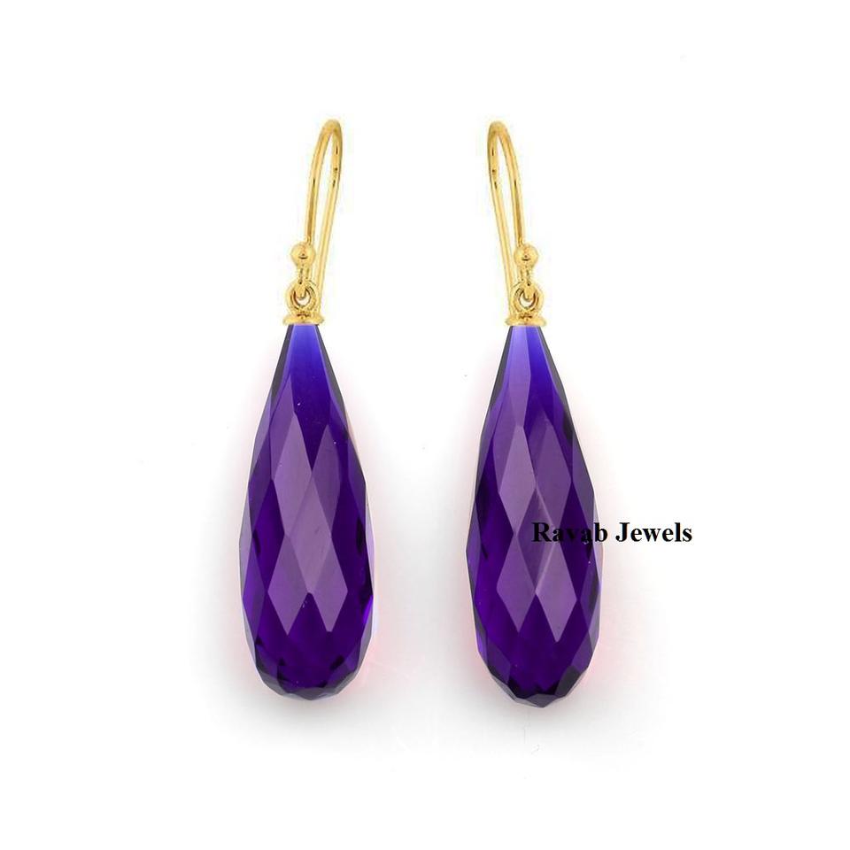 925 Sterling Silver Long Drop Dangle Earrings Faceted Gold Plated Purple Amethyst Quartz Gemstone Cute Wedding Gift Trendy