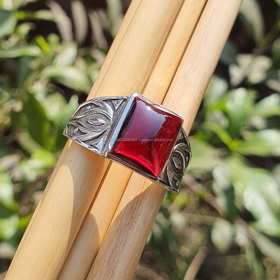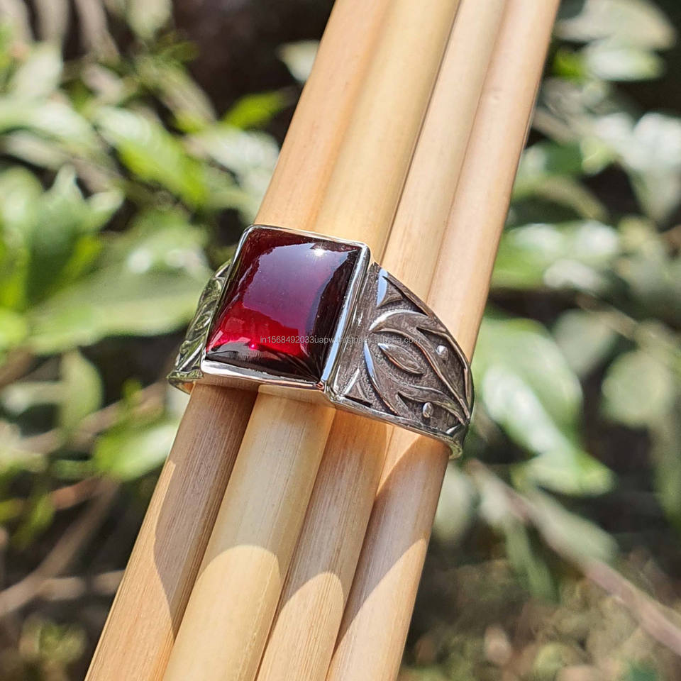 แหวนแต่งงานสเตอริงสำหรับผู้ชายสีเงินสเตอร์ลิงแบบคลาสสิกมีเชือกโกเมนขนาด12x10มม. สีแดงดีไซน์สวยอย่างเป็นธรรมชาติ925