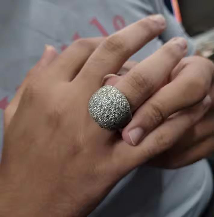 แหวนโดมเพชรมอยส์ซาไนท์แบบดั้งเดิมหรูหราขนาดไมโครลายเงินสเตอร์ลิง925แหวนหมั้นสำหรับงานปาร์ตี้ประจำวันของเธอ
