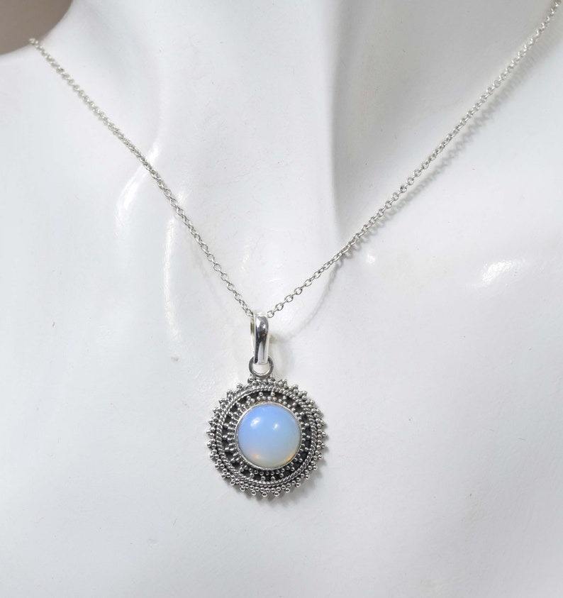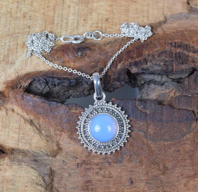 925 Sterling Silver Boho Style Pendant Handmade Milky Opalite Gemstone Jewelry with Rhodium Plating Wedding Gift for Women