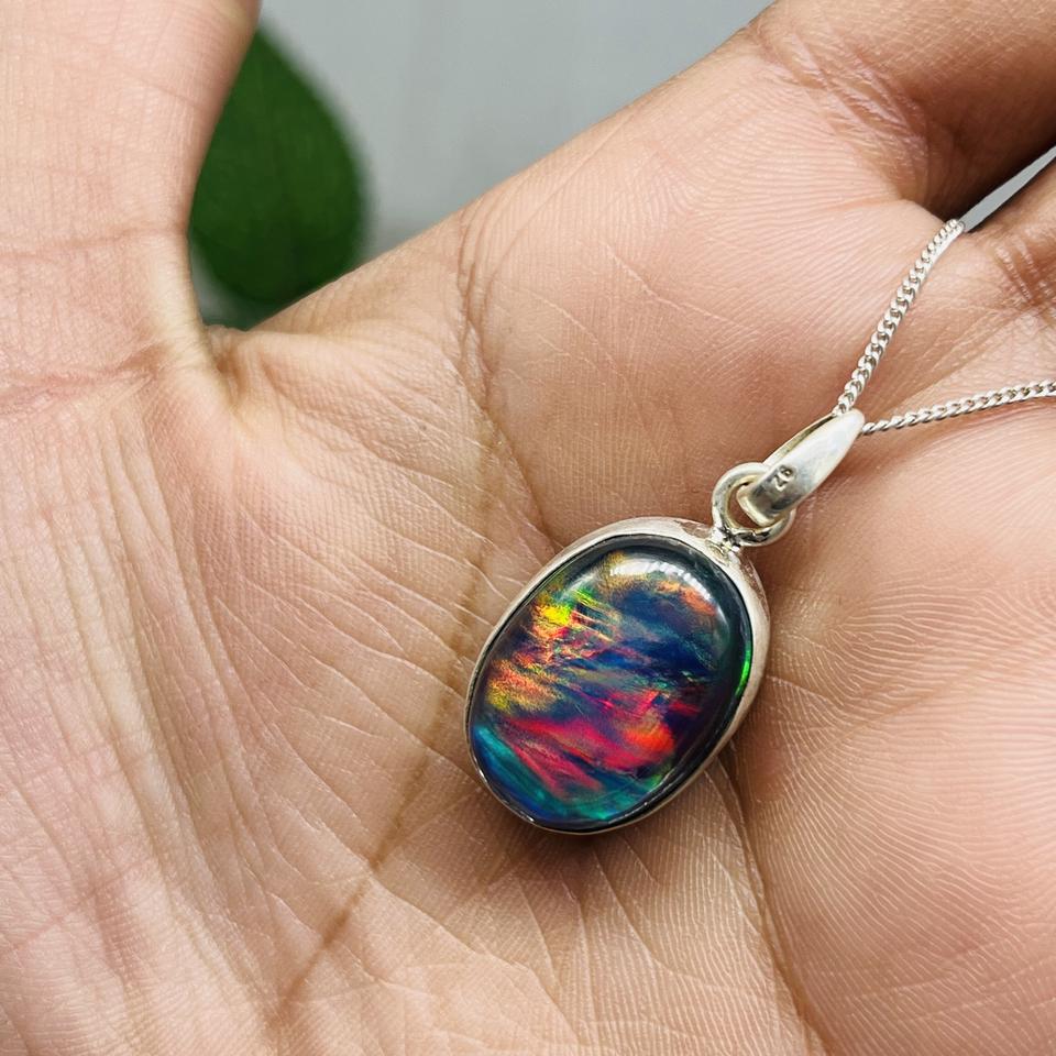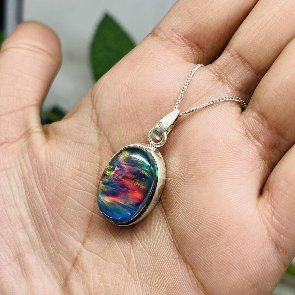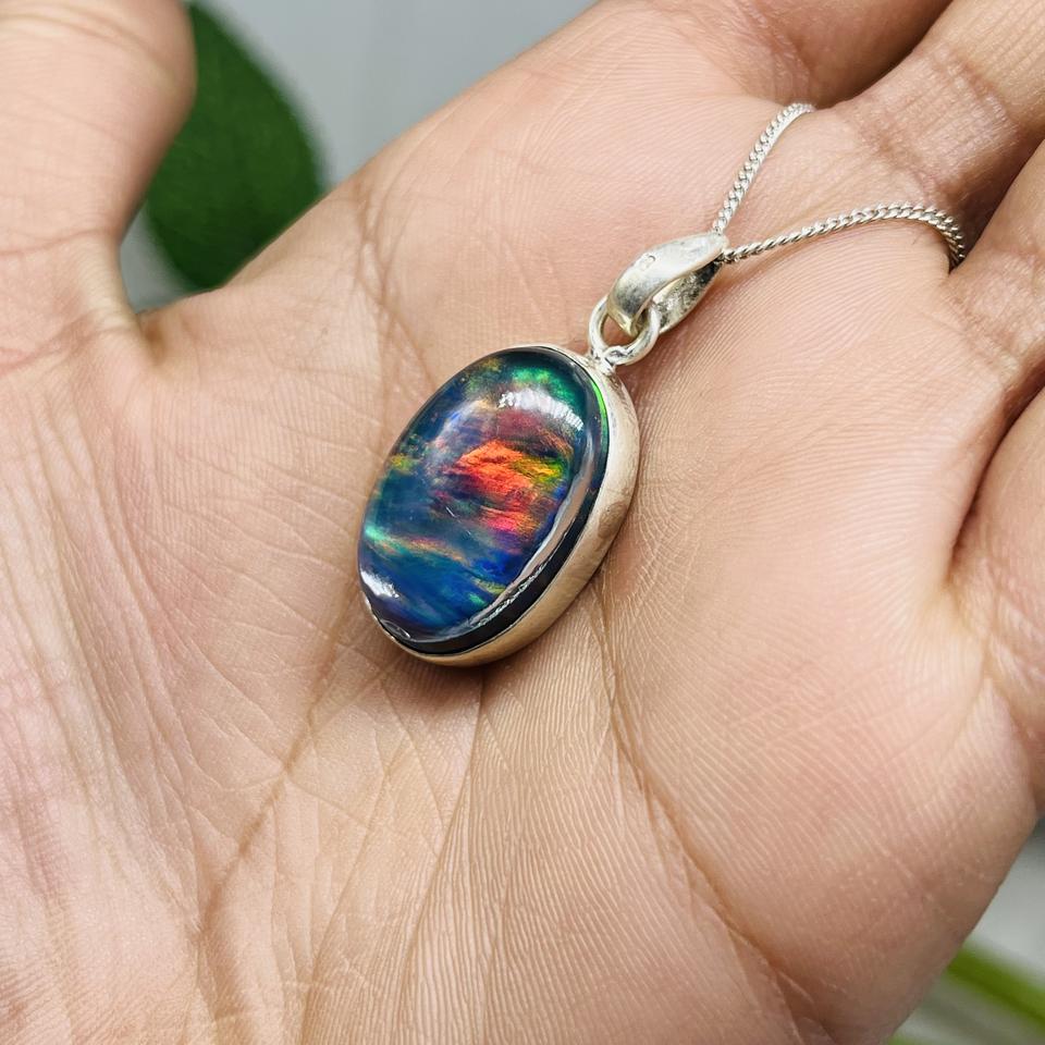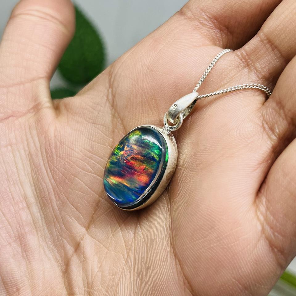จี้โอปอลแสงออโรราที่เรียบง่ายสีเงิน925ทำด้วยมือเครื่องประดับอัญมณีของขวัญสำหรับเธอสำหรับงานเลี้ยงสำหรับเด็ก