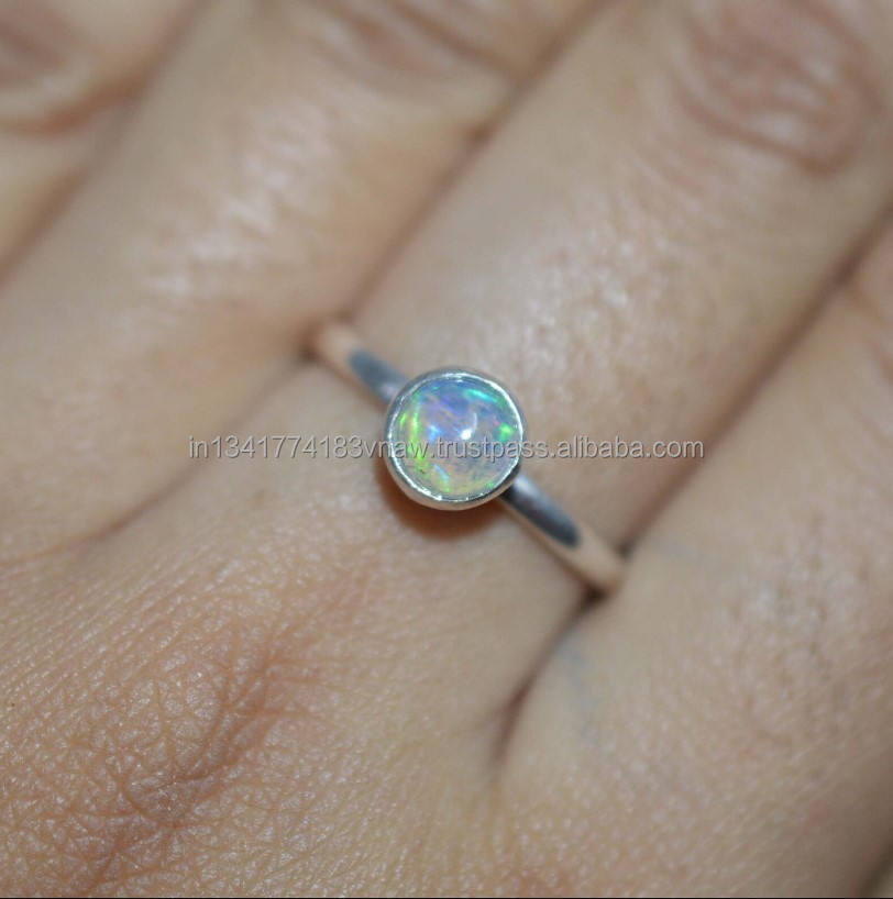 925 Sterling Silver Minimalist Bezel Setting Genuine Ethiopian Opal Multi-Color Eternity Vermeil Super Solid Fine Rings Party