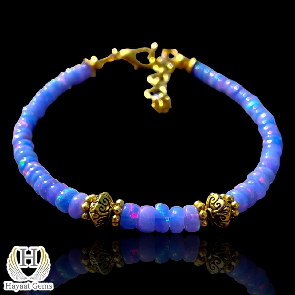 สร้อยข้อมือเงิน925แบบเรียบง่ายพร้อมด้วยโอปอลเอธิโอเปียเรียบไข่มุกลูกปัดสีม่วงสำหรับทำเครื่องประดับ