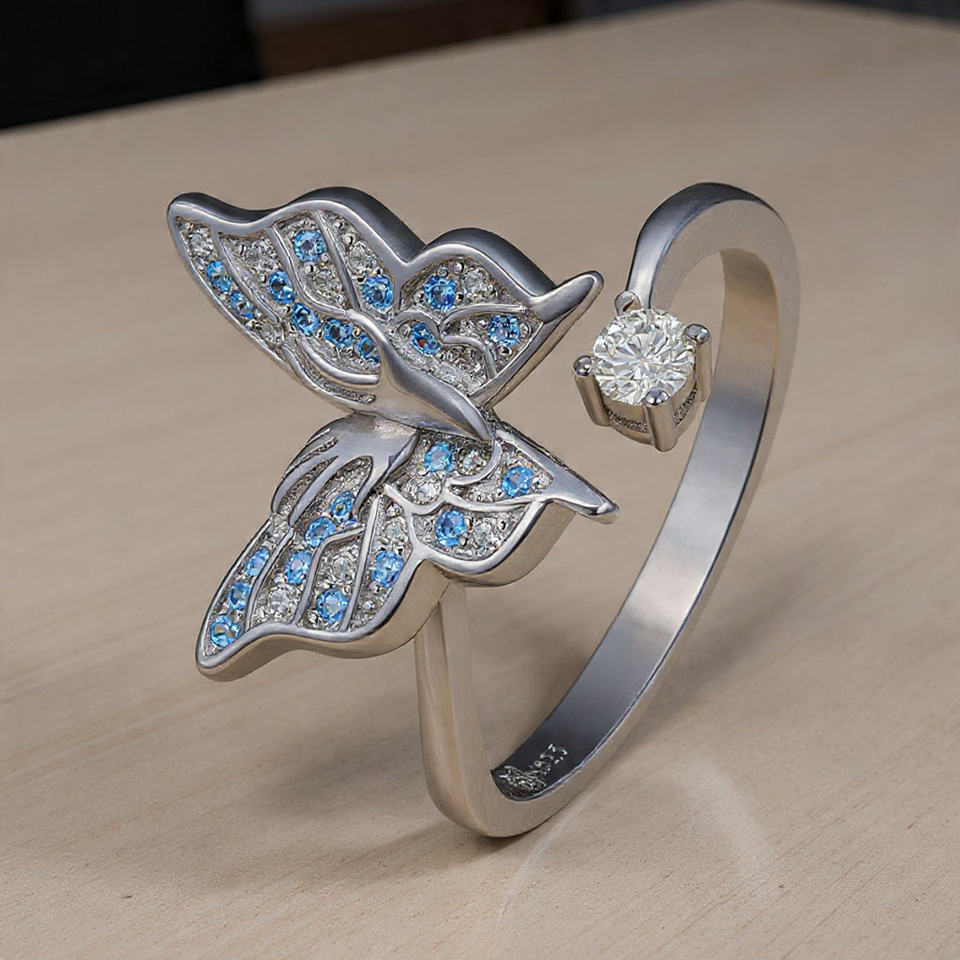 แหวนเงินแท้แบบเรียบง่ายสำหรับงานแต่งงานแหวน925ดีไซน์ปีกผีเสื้อแบบบายพาสแบบเรียบง่าย