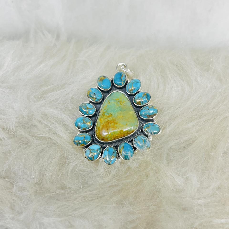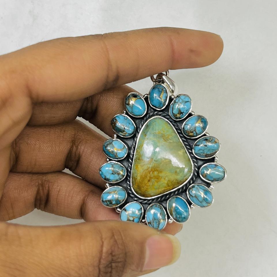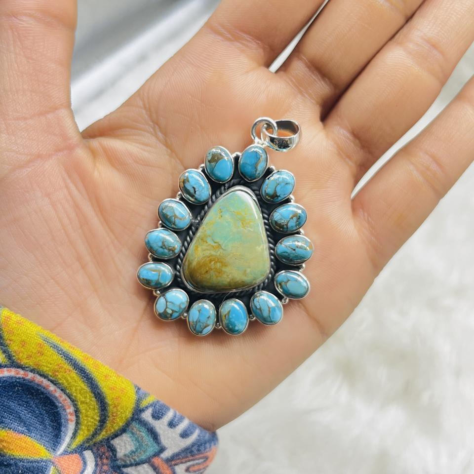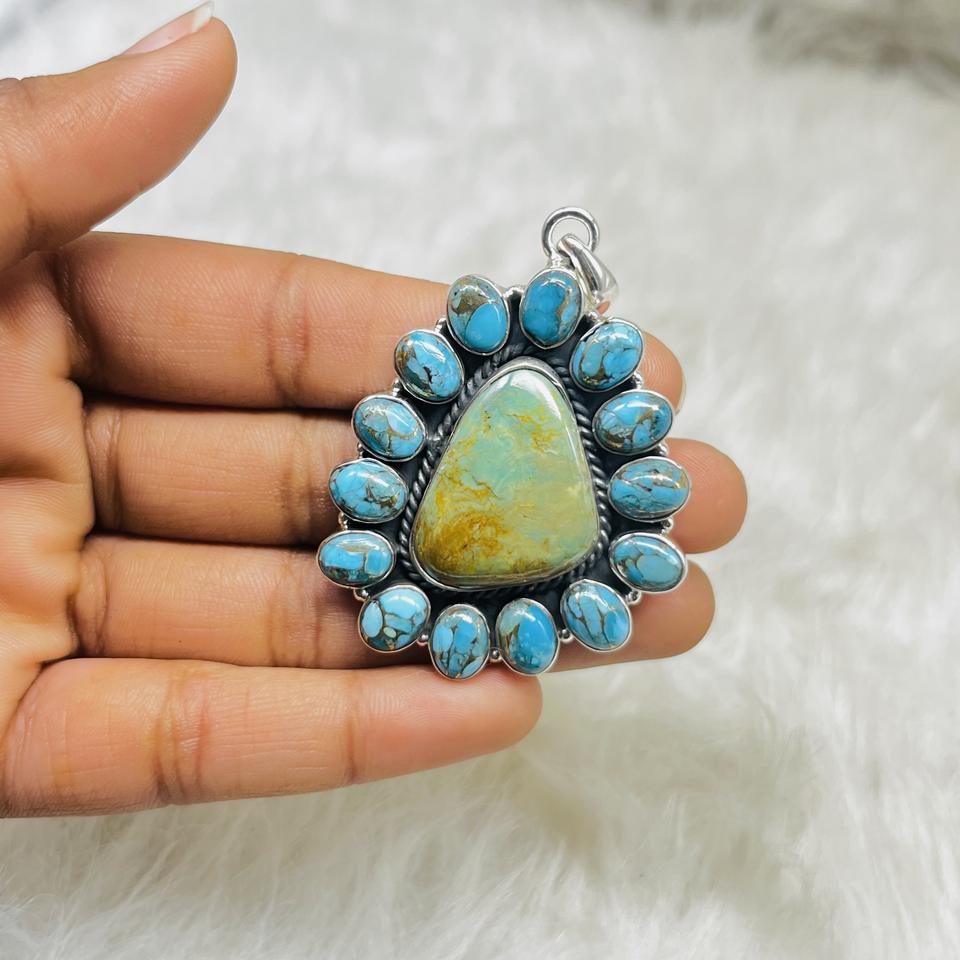 จี้เทอร์ควอยซ์สีเงินสี925จี้สเตอร์ลิงที่สวยงามจี้หินธรรมชาติที่มีเสน่ห์จี้เทอร์ควอยซ์