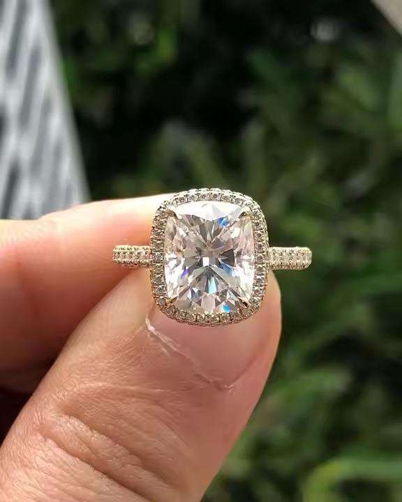 แหวนหมั้นเงินแท้ 925 ประดับโมอิสซาไนต์สังเคราะห์ทรงกลุ่ม ดีไซน์รัศมีเคลือบโรเดียม พร้อมพลอยรูปทรงโรสคัท เครื่องประดับคุณภาพสูง