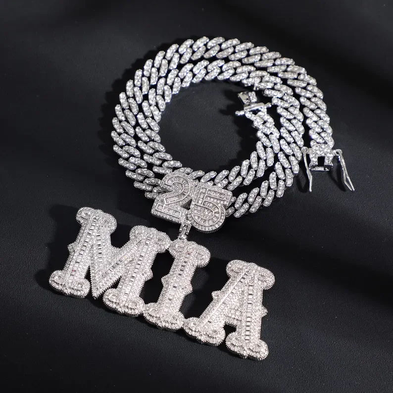 จี้เพชรโมอิสซาไนต์เงินแท้ 925 ชุบทองคำขาว VVS สร้อยคอชื่อสั่งทำ สร้อยคอแบบฮิปฮอปประดับเพชร