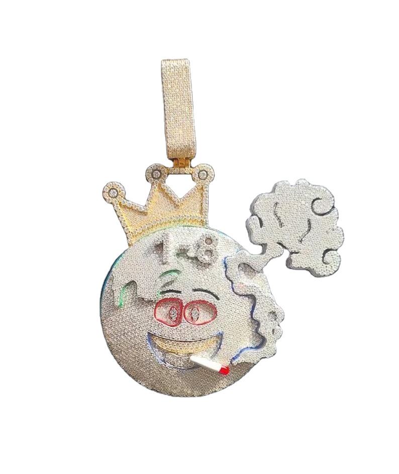 จี้เพชรรูปโลกโมอิสสีเงินสเตอริ925