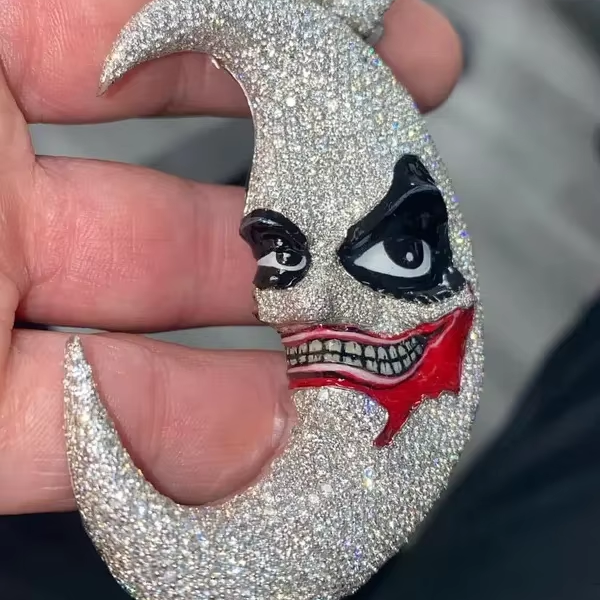 จี้เงินแท้ 925 ประดับมอสซาไนต์ รูปพระจันทร์เด็กชายฮิปฮอป พร้อมตัวอักษรตามสั่ง ทำด้วยมือ จี้เพชรแบบสั่งทำพิเศษ