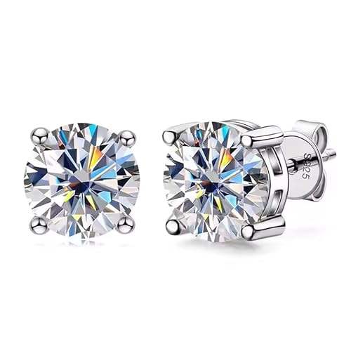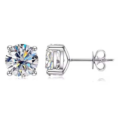 ต่างหูเพชรโมอิสซาไนต์ทรงบริลเลียนต์ชุบทองคำขาว 925 เงินแท้ น้ำหนัก 2 กรัม สไตล์มินิมอลคลาสสิก เหมาะสำหรับงานแต่งงาน จาก Shama Gems Jewels