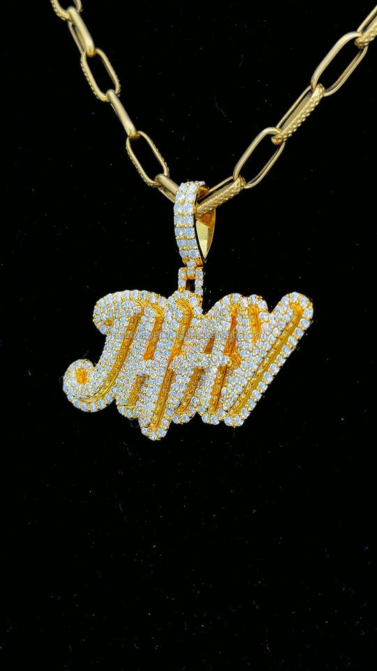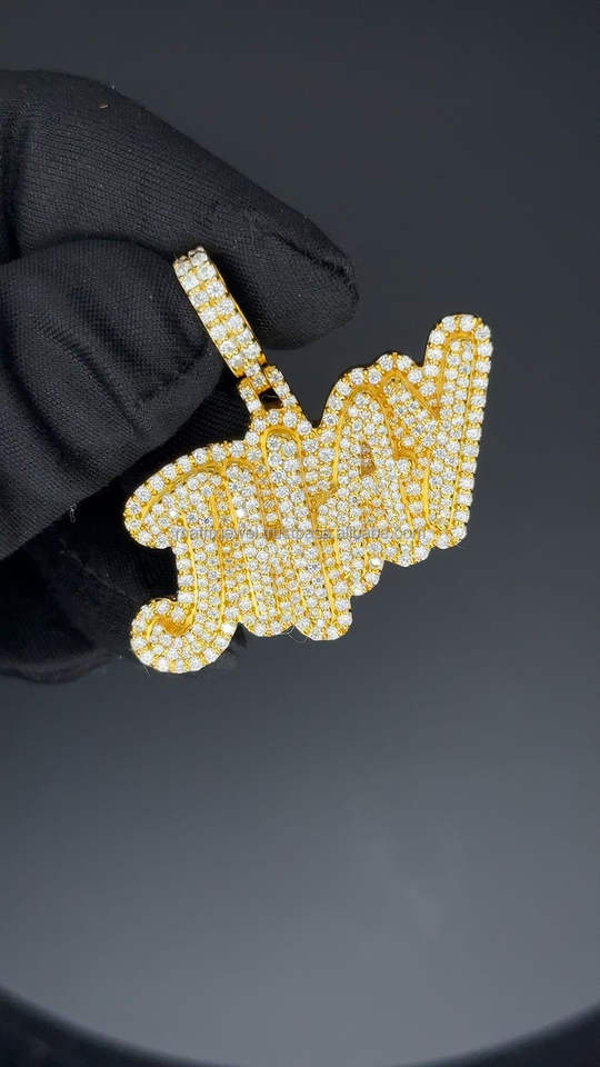 จี้เงินแท้ 925 ประดับมอสซาไนต์สั่งทำพิเศษ จี้มอสซาไนต์ VVS ประดับเพชรแบบ Iced Out จี้ชื่อประดับเพชร