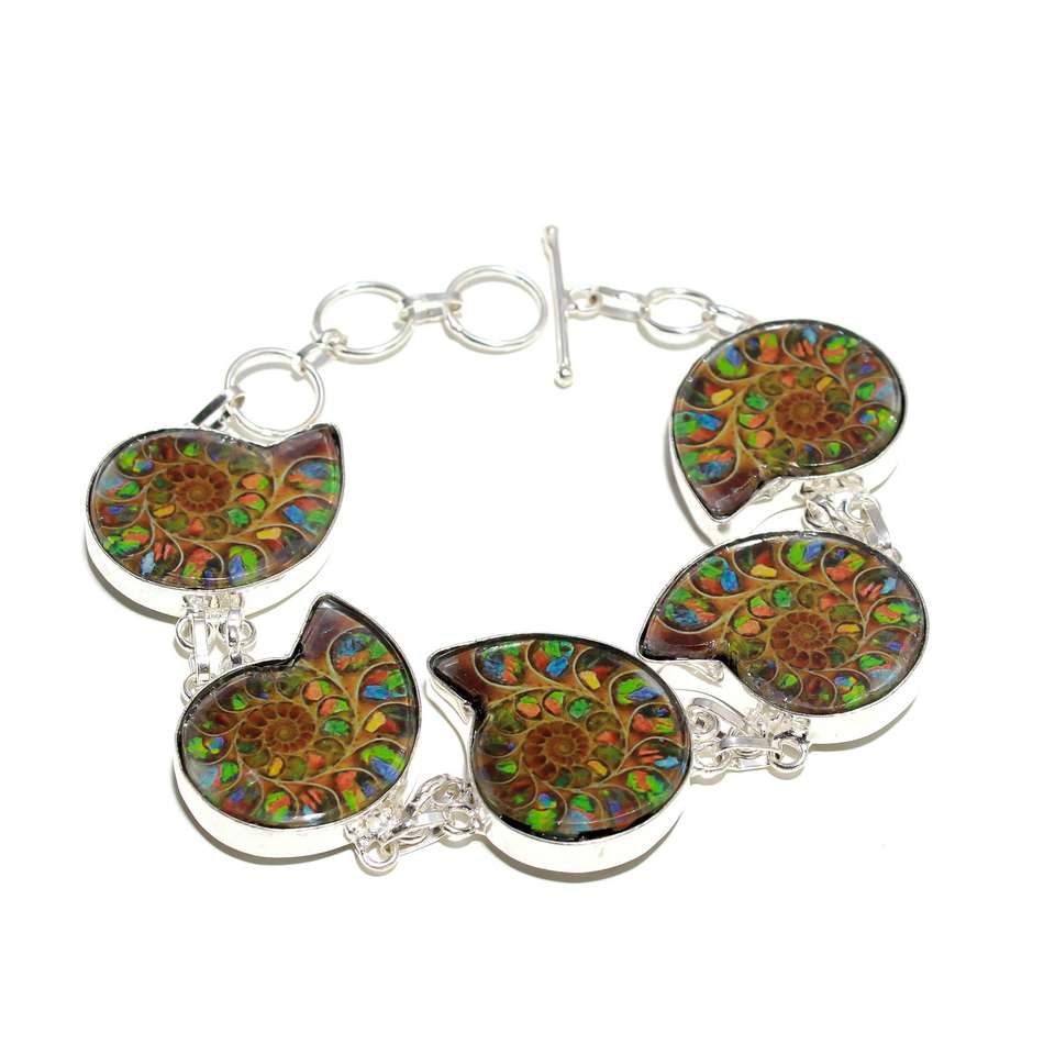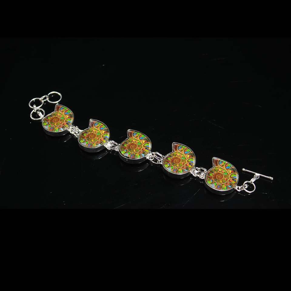 สร้อยอัญมณีแอมโมไนต์หลากสีเงินสเตอร์925กำไลข้อมือแต่งงานวันครบรอบวันคริสต์มาสแบบคลาสสิกชั้นดี