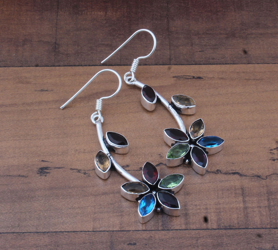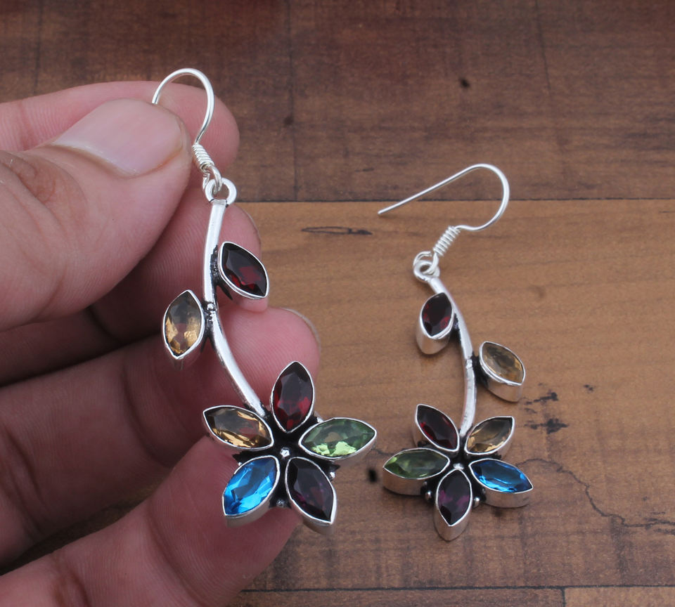 ต่างหูเงินแท้ 925 ประดับพลอยหลากชนิด รูปทรงหยดน้ำ หรูหรา สำหรับผู้หญิง ประดับพลอยบลูโทแพซและโกเมน เหมาะสำหรับงานแต่งงานและงานเลี้ยง