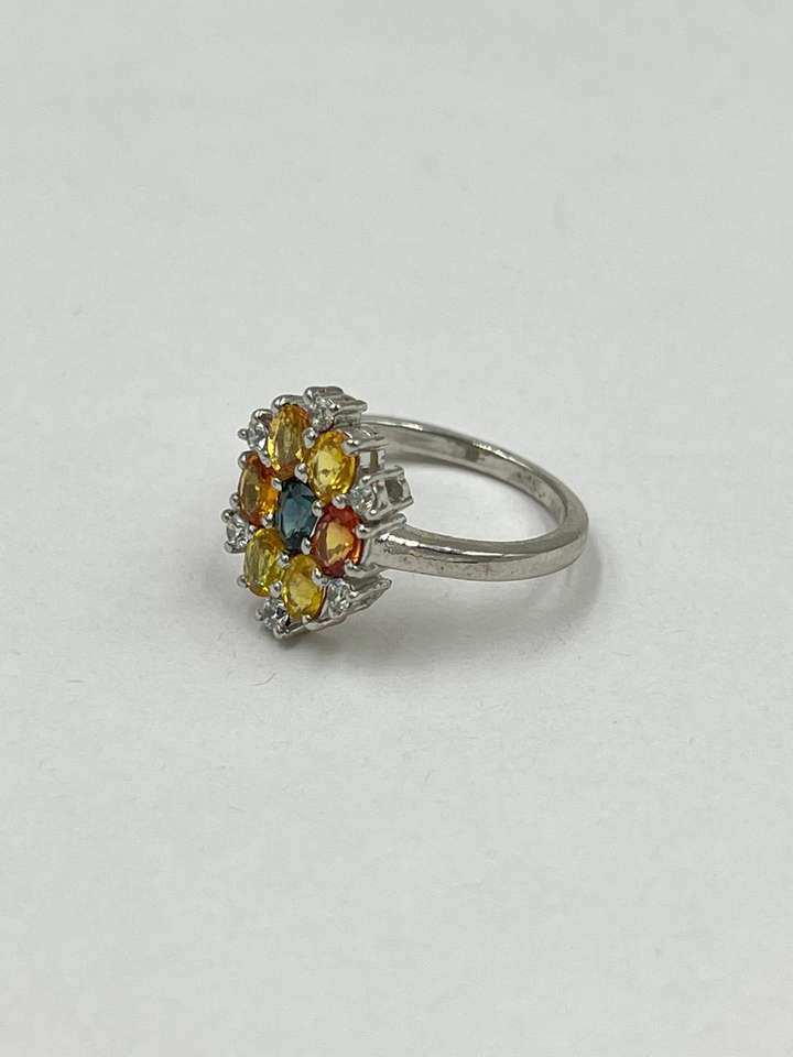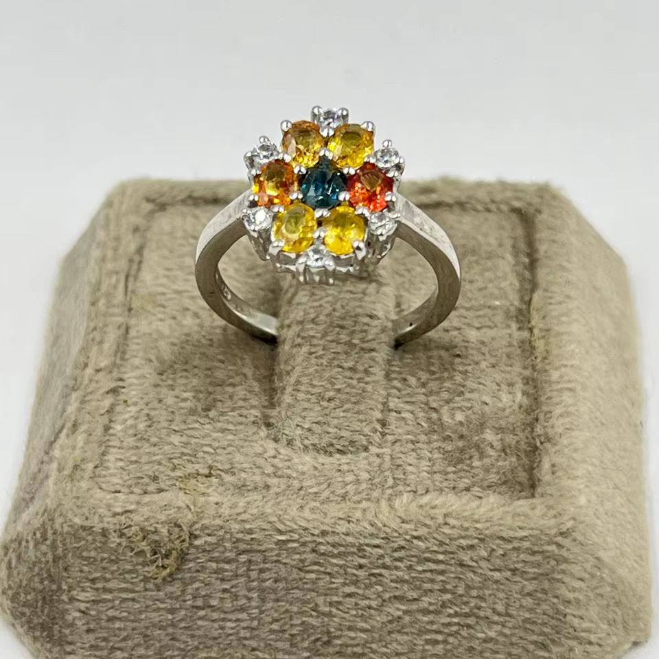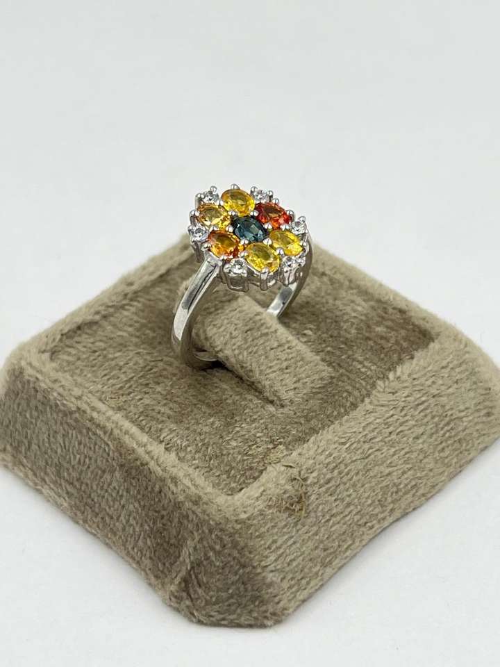 แหวนเงินแท้ 925 ประดับไพลินหลากสีและเพชร CZ | แหวนพลอยหลากสีทำมือ | เครื่องประดับเงินแท้ขายส่งจากอินเดีย
