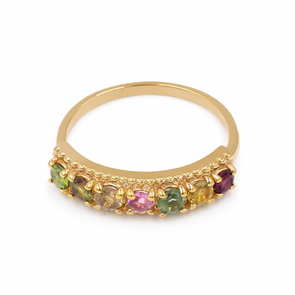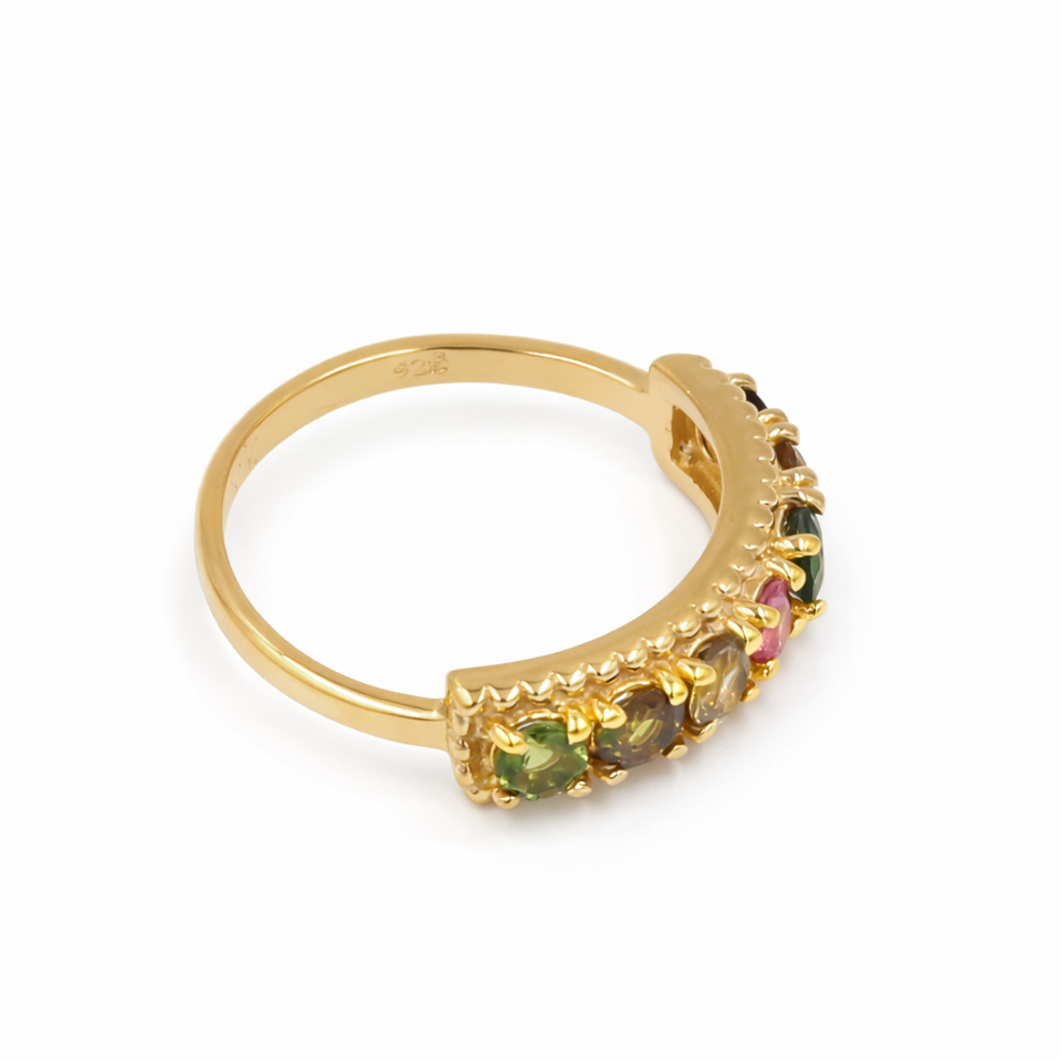แหวนเงินแท้ 925 ประดับทัวร์มาลีนหลากสีเจ็ดเม็ดทรงกลมแบบครึ่งวงกลม ชุบทองและโรเดียม