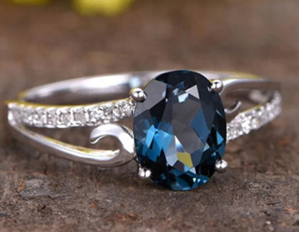 แหวนเงินแท้ 925 ประดับพลอยบลูโทแพซ Mystic Fire ต่างหูบลูโทแพซธรรมชาติ ทองคำขาว