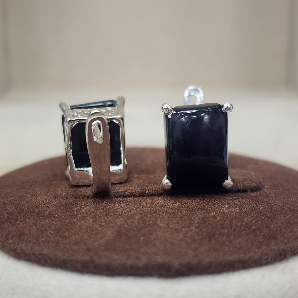ต่างหูผู้หญิงสีดำหินโอนิกซ์สี่เหลี่ยมสีดำดีไซน์คลาสสิกสีเงินสเตอร์ลิง925สำหรับผู้หญิง