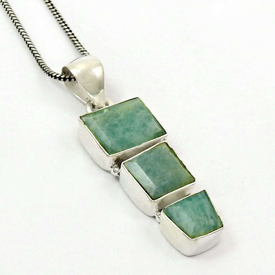 เครื่องประดับอัญมณีอมาโซไนต์ธรรมชาติทำด้วยมือเงินแท้925จี้เสน่ห์ของผู้หญิงผู้ชายเครื่องประดับโบฮีเมียนยูนิเซ็กซ์ OEM