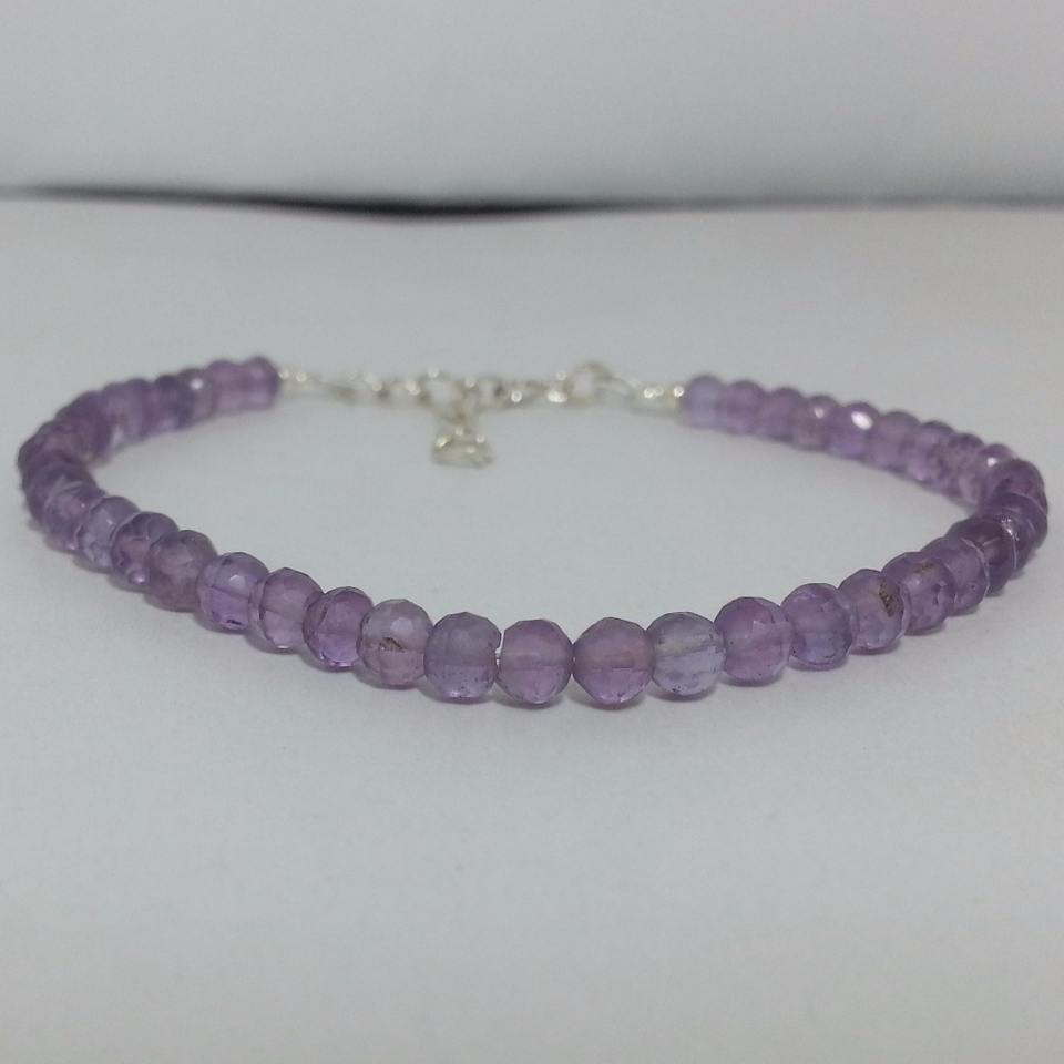 Supply Ability: 925เงินธรรมชาติ Amethyst Gemstone Faceted ลูกปัดสร้อยข้อมือ