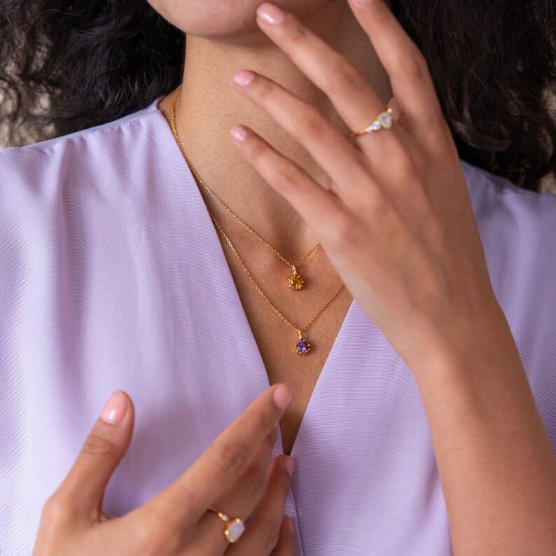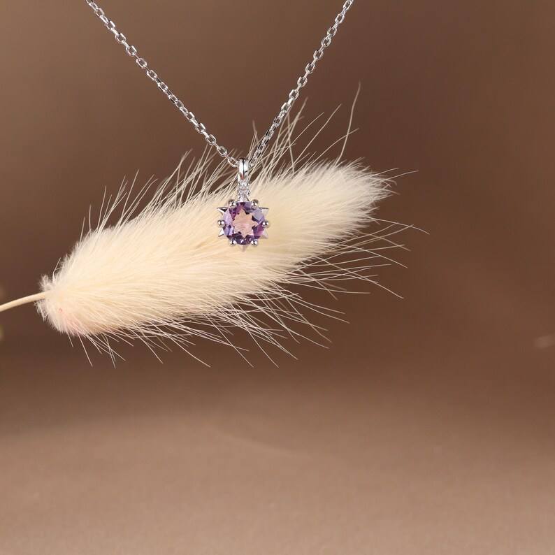 Keyword:Amethyst Tiny Zircon Pendant Necklace 925 Sterling Silver