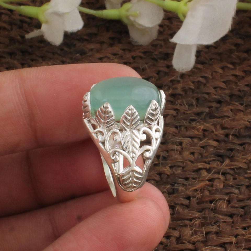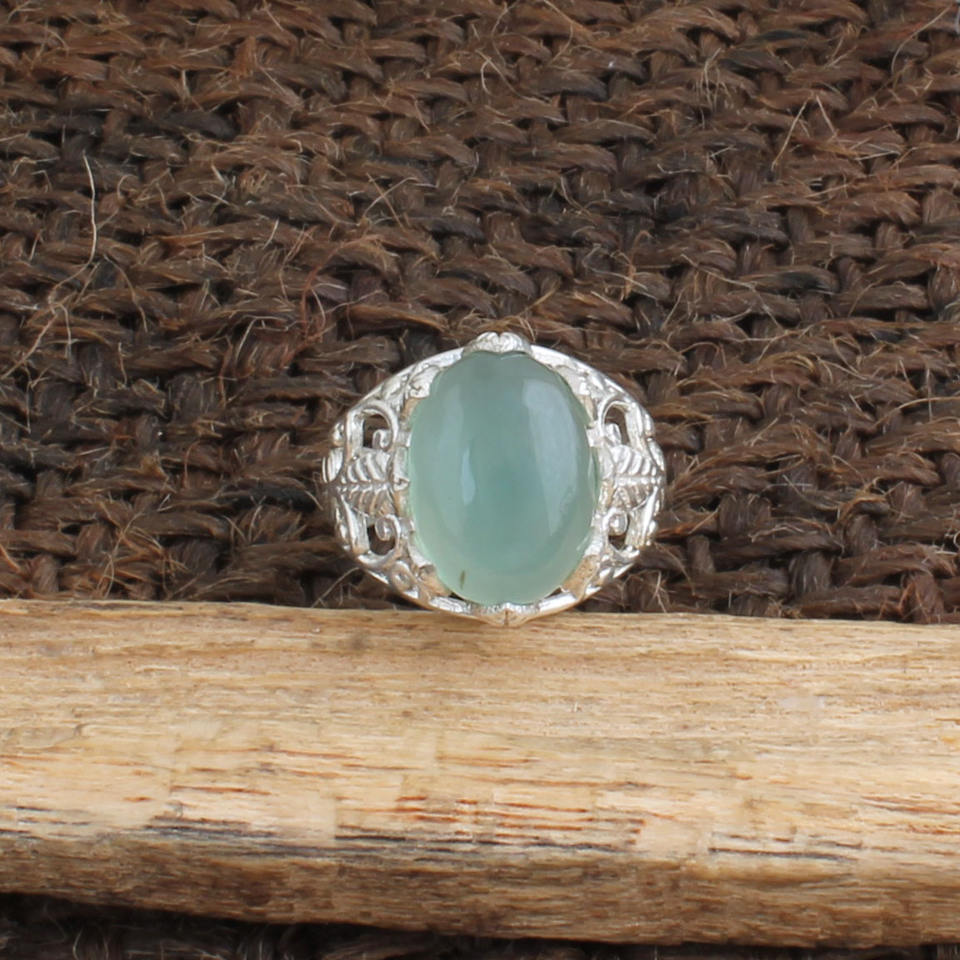 แหวนเงินแท้ 925 ประดับพลอยอะความารีนธรรมชาติทรงดอกไม้ แกะสลักด้วยมือ พลอยสีน้ำเงินรูปดอกไม้ ขายส่งเครื่องประดับ