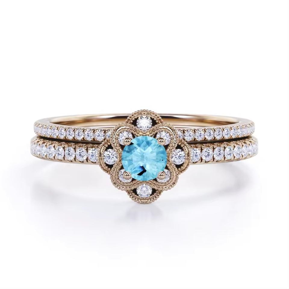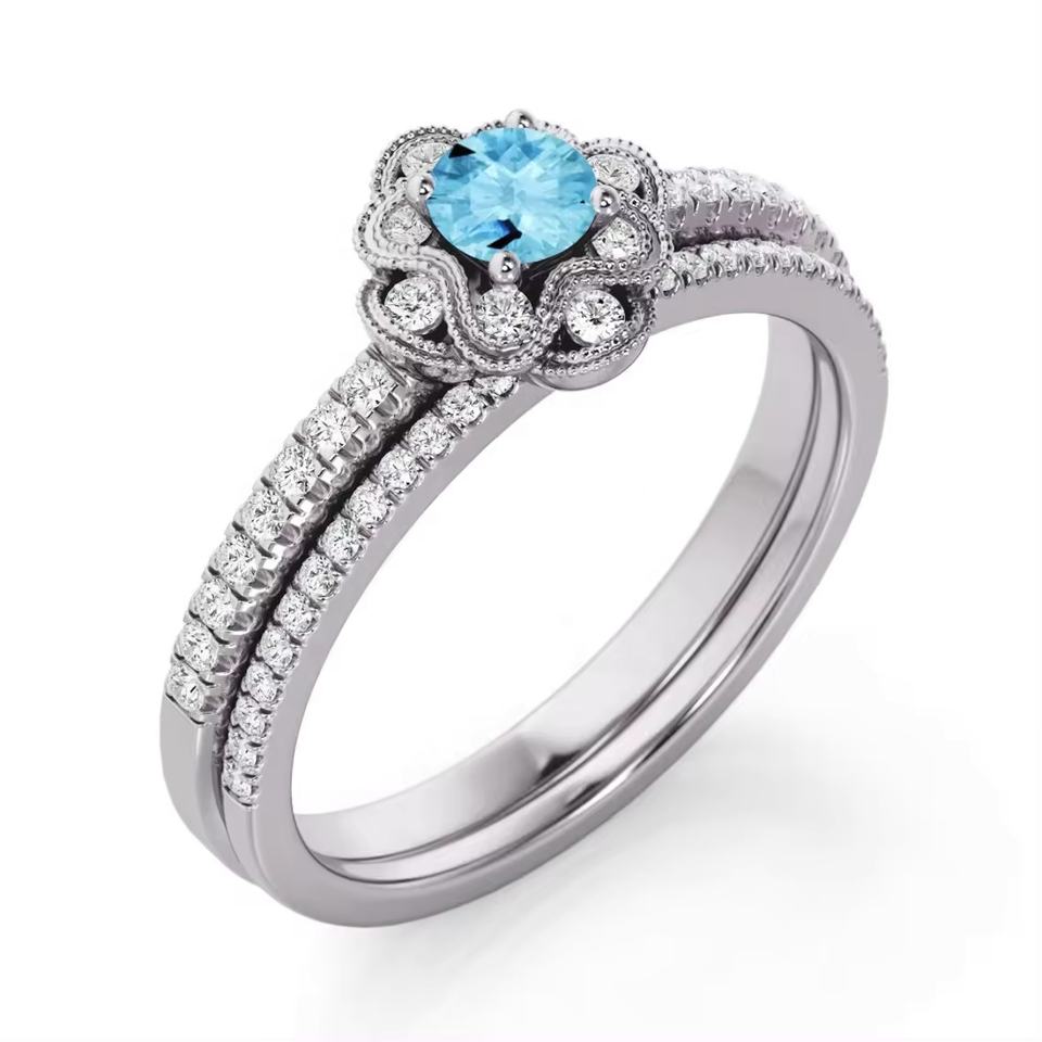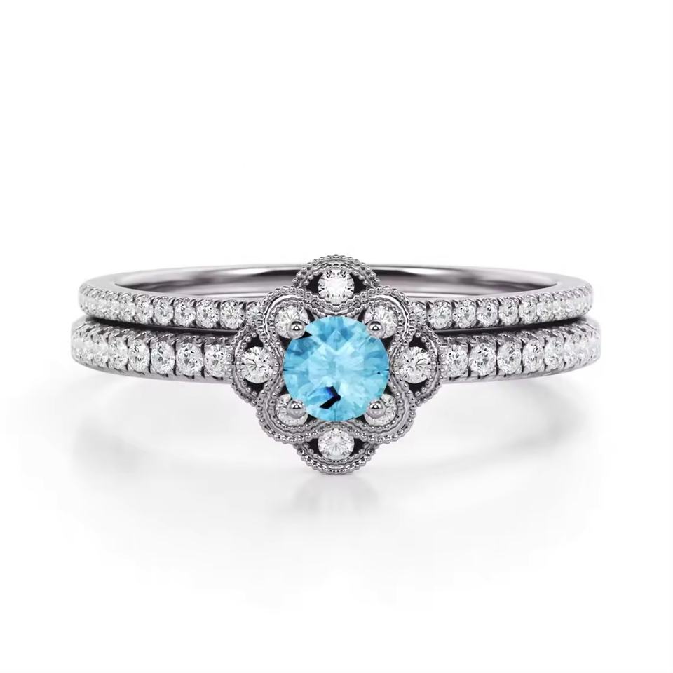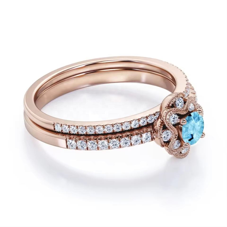 925 Sterling Silver Natural Aquamarine Round Loose Gemstone Wedding Ring Set Bulk Jewelry Wholesale Price From Indian Supplier