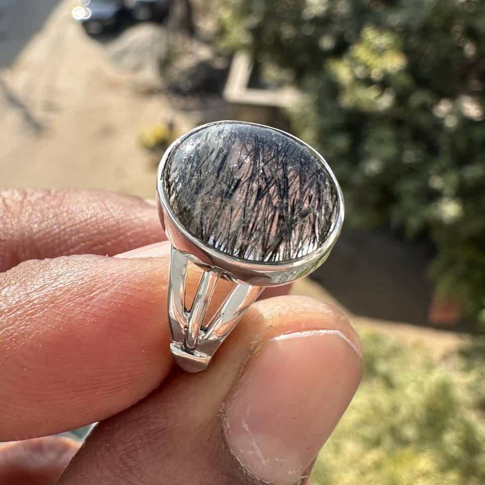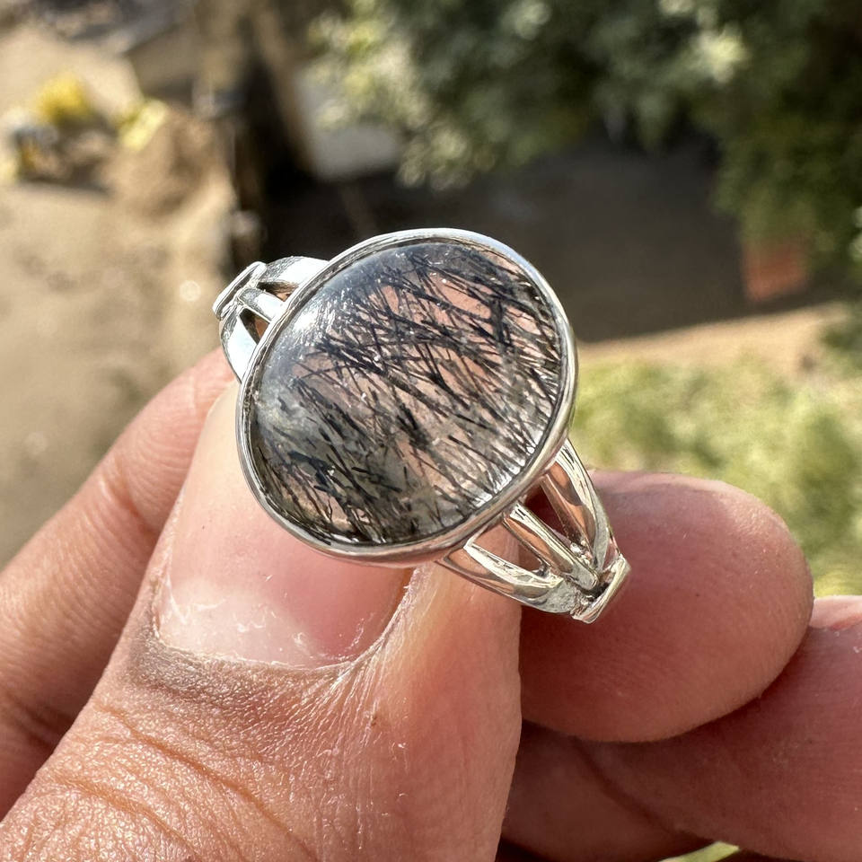 แหวนเงินแท้ 925 ประดับด้วยควอตซ์รูไทล์สีดำธรรมชาติ | เครื่องประดับอัญมณีทำมือ