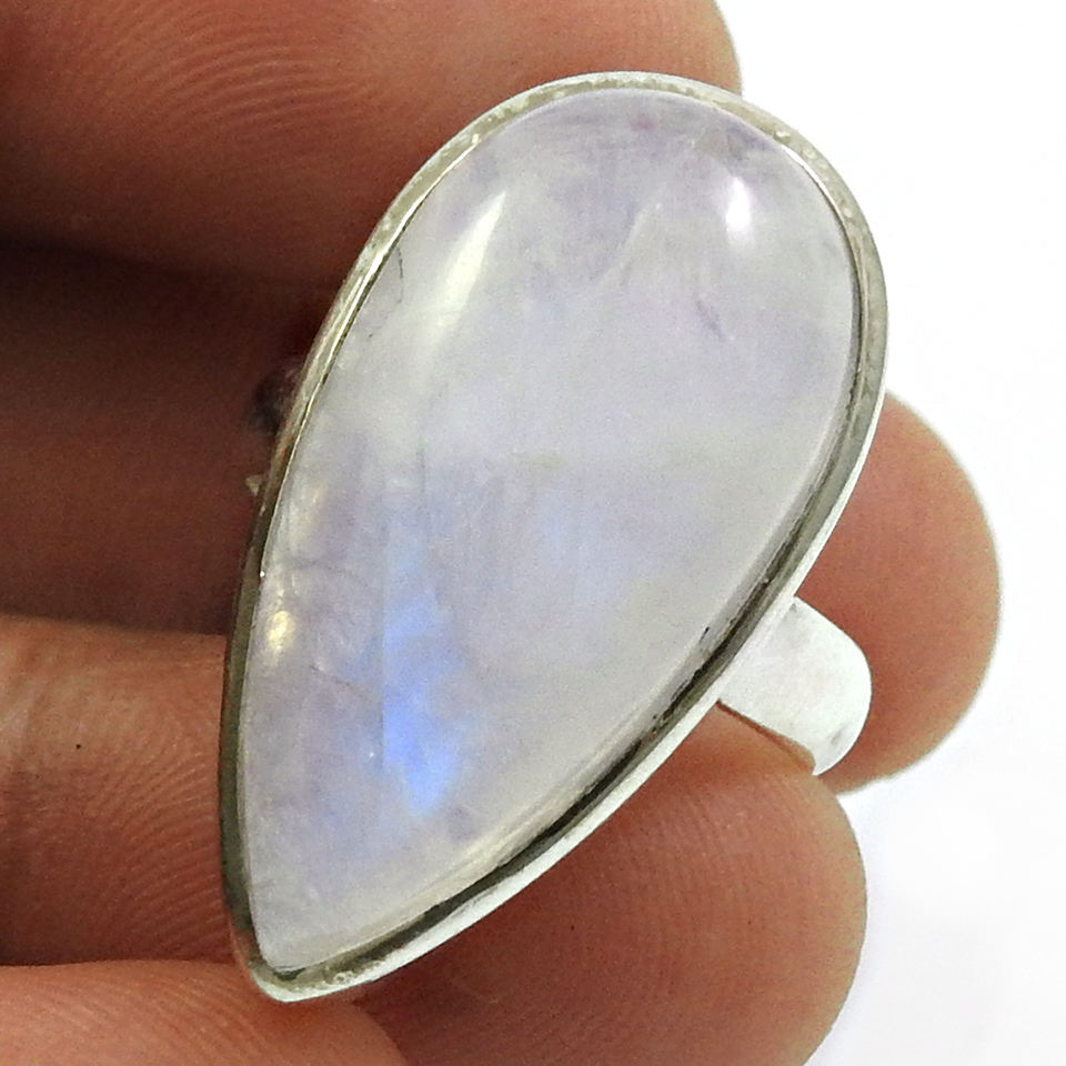 แหวนเงินสเตอร์ลิงสีฟ้าธรรมชาติสีรุ้งทรงหยดน้ำแหวนคลาสสิก925ทำด้วยมือเครื่องประดับ Boho