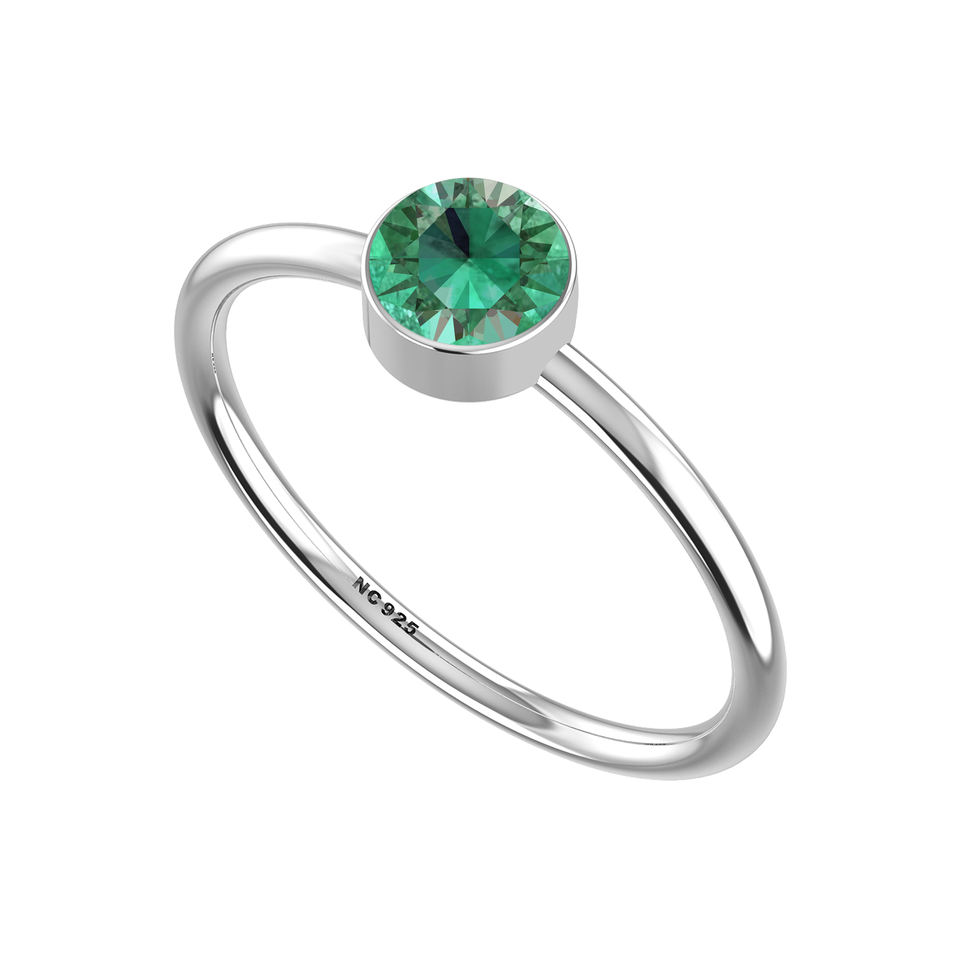 925แหวนเงินแท้มรกตธรรมชาติออกแบบด้วยมือของขวัญที่เรียบง่ายเครื่องประดับวางซ้อนกันได้ได้รับการรับรองสำหรับปาร์ตี้