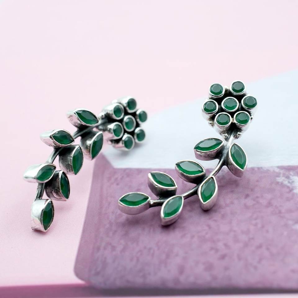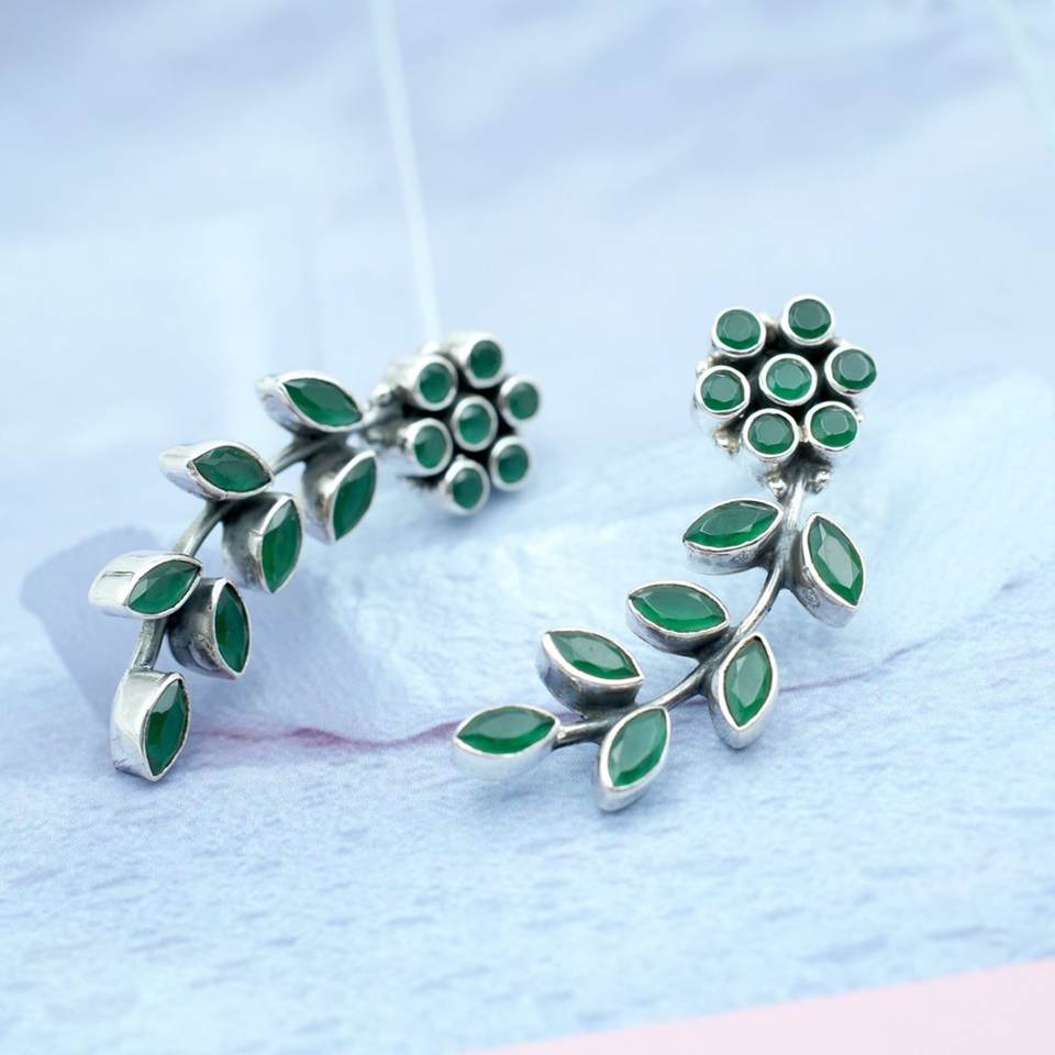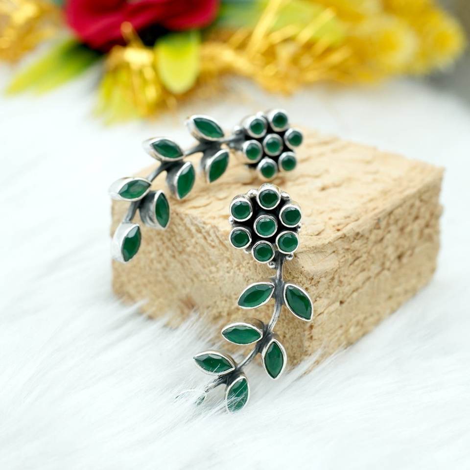 925ต่างหูเงินสเตอร์ลิงสีเขียวมรกตกระดุมของขวัญวันครบรอบแต่งงานที่เรียบง่ายสำหรับเพชรของเธอ