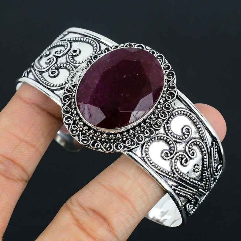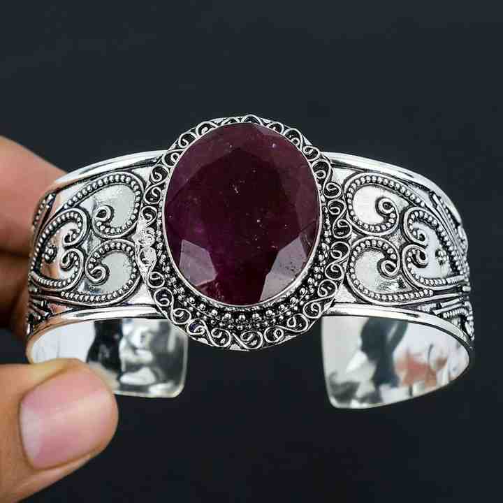 925สเตอร์ลิงเงินธรรมชาติกำไลพลอยสีแดงดีไซน์เนอร์ปรับได้ทำด้วยมือ