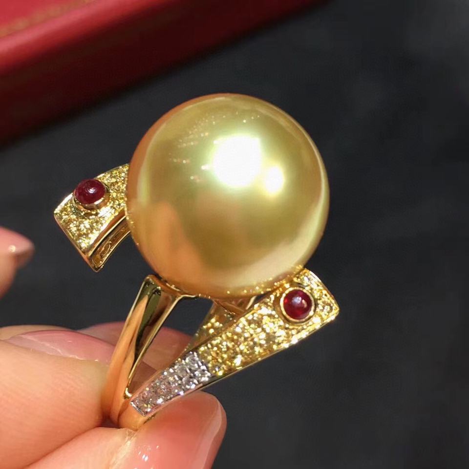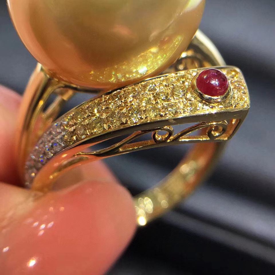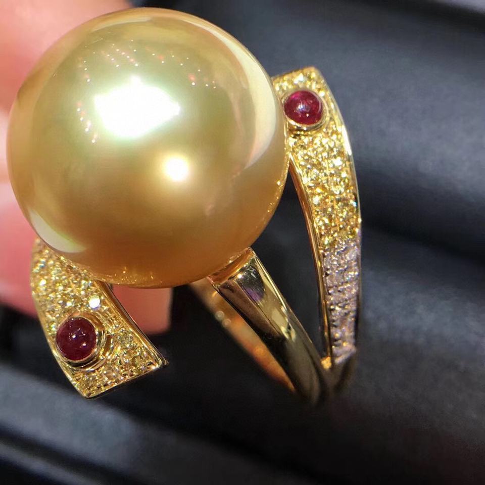 แหวนเงินแท้ 925 ประดับมุกทองธรรมชาติ ระดับไฮเอนด์ ขนาด 13-14 มม. คุณภาพไร้ตำหนิ รุ่นความแม่นยำสูง