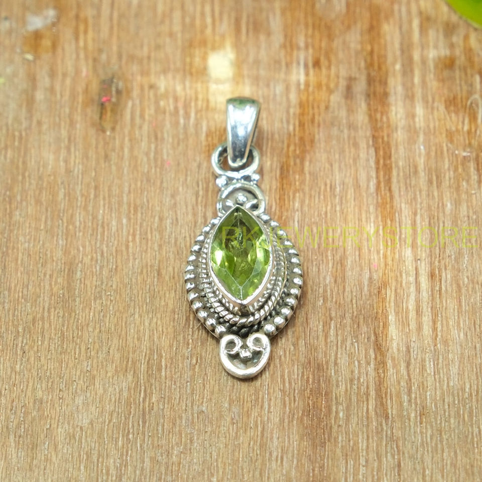 จี้เงินแท้ 925 ประดับพลอยเพอริดอทสีเขียวธรรมชาติ งานแฮนด์เมด ดีไซน์วินเทจ ทรงมาร์คีส์ สไตล์โบโฮ เอธนิค สำหรับผู้หญิง