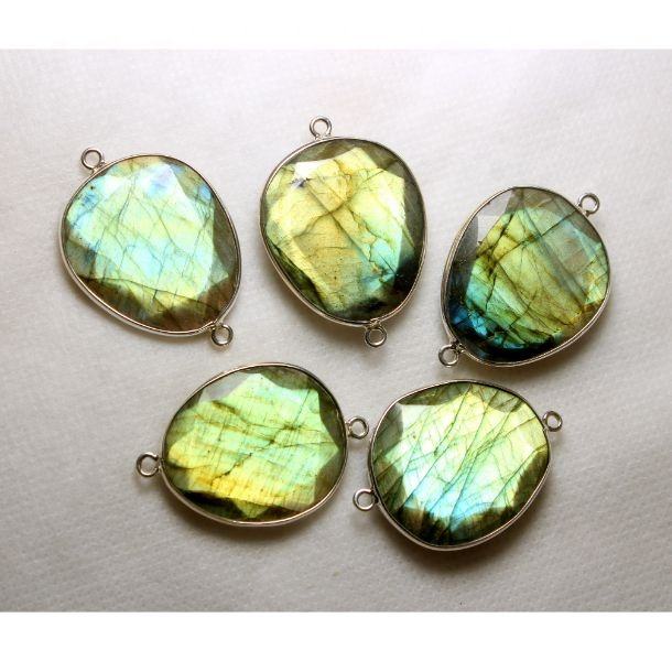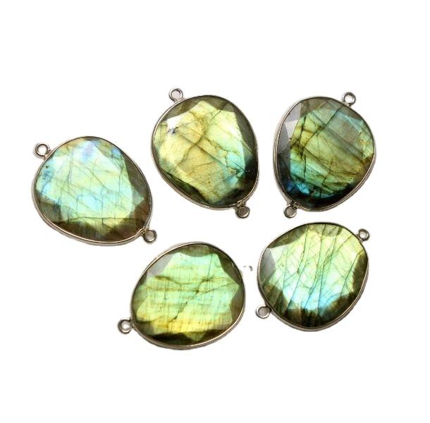 ตัวเชื่อมต่อเงินสเตอร์ลิง925ด้วยหินเจียระไนเหลี่ยมเพชรพลอยลาบราดอร์ไลต์ธรรมชาติขนาด23X26มม. พลอยหลวมรูปทรงแฟนซี