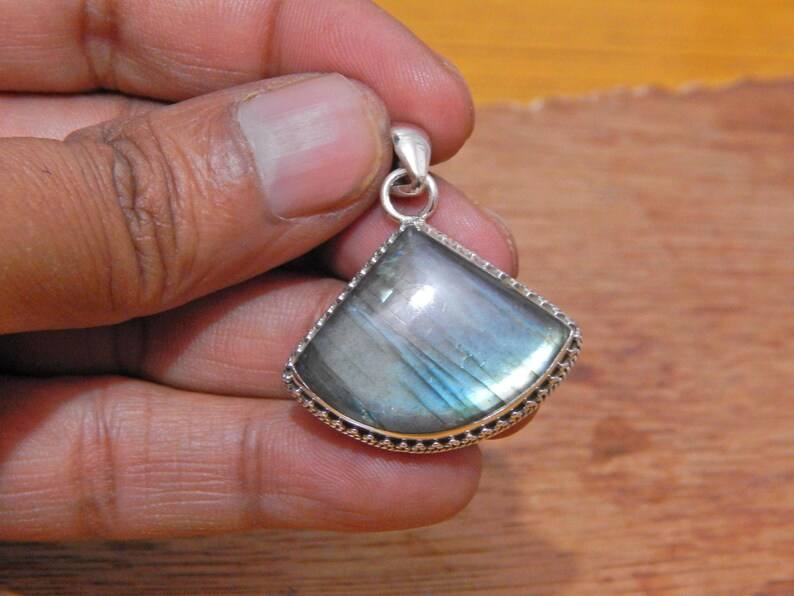 จี้สร้อยคอลาบราดอไรต์ธรรมชาติทำด้วยมือทำจากเงินสเตอร์ลิง925จี้อัญมณีสีโรสโกลด์ของขวัญสำหรับเธอ