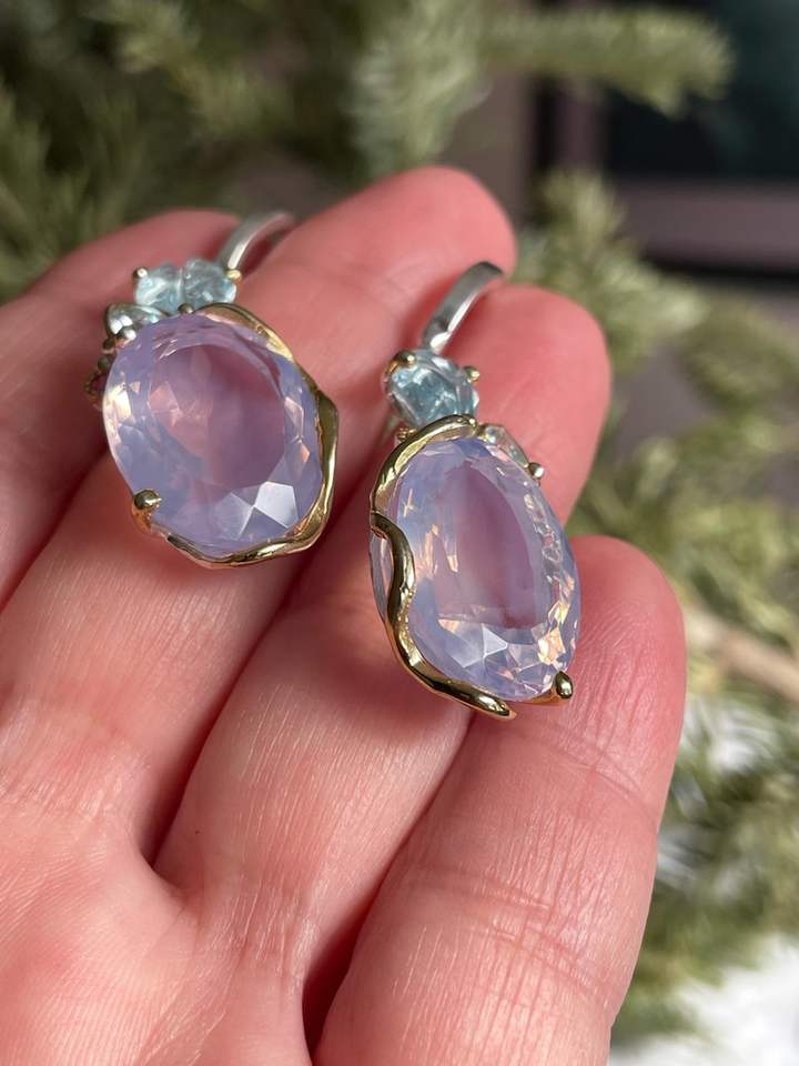 Lavender Quartz Topaz Tourmaline Dangle Earrings