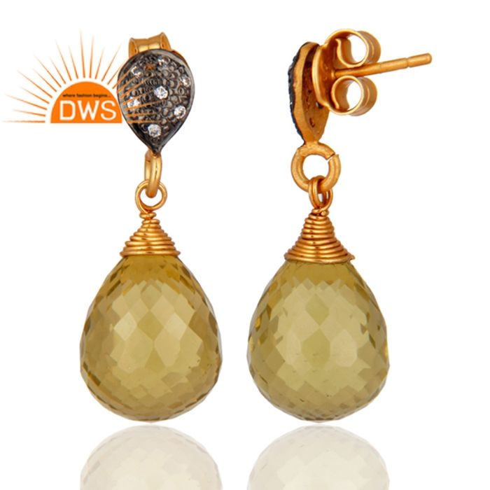 925เงินสเตอร์ลิงธรรมชาติมะนาวบุษราคัมพลอย Bromlite ตัดวางต่างหูขายส่งทองชุบเครื่องประดับเงิน