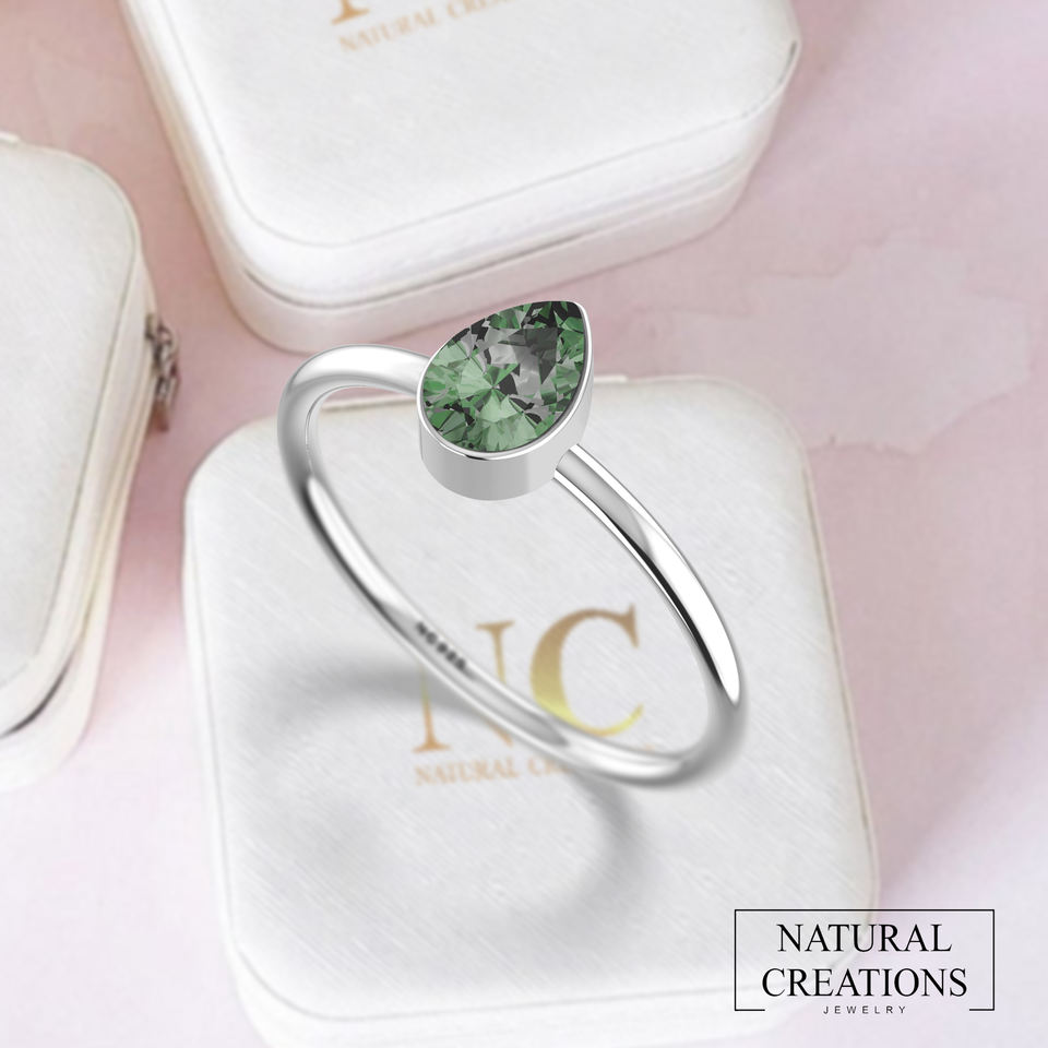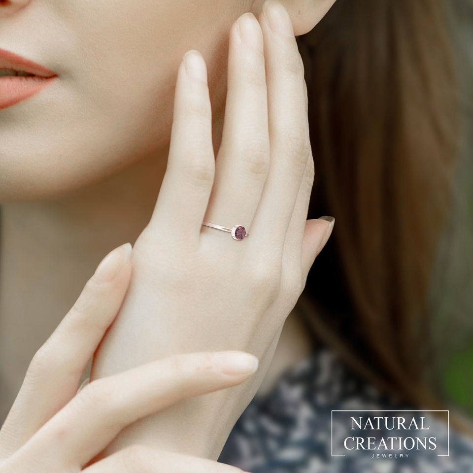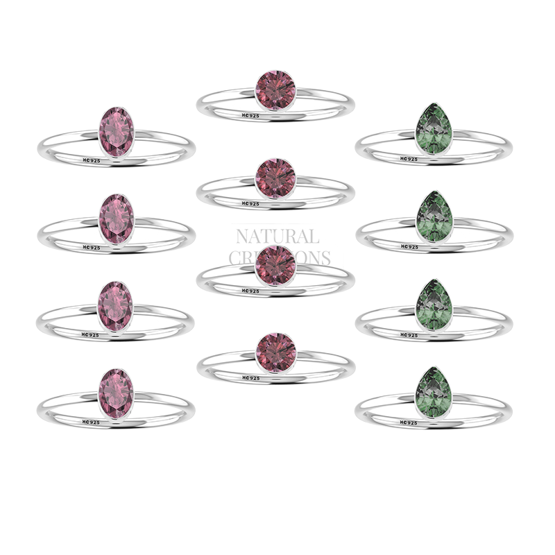 925สเตอริงเงินธรรมชาติหลายทัวร์มาลีนออกแบบด้วยมือของขวัญแต่งงานที่เรียบง่ายเครื่องประดับแหวนวางซ้อนกันได้ของเธอ