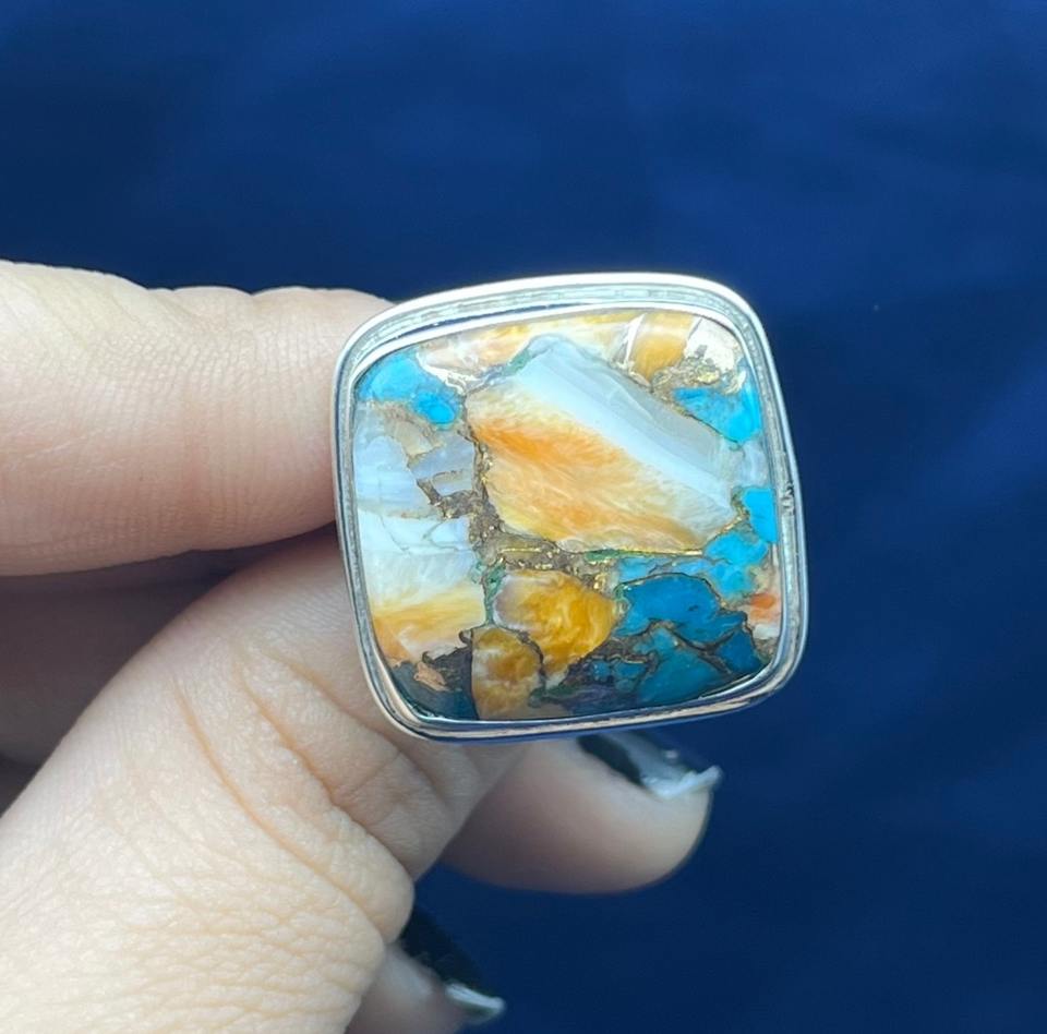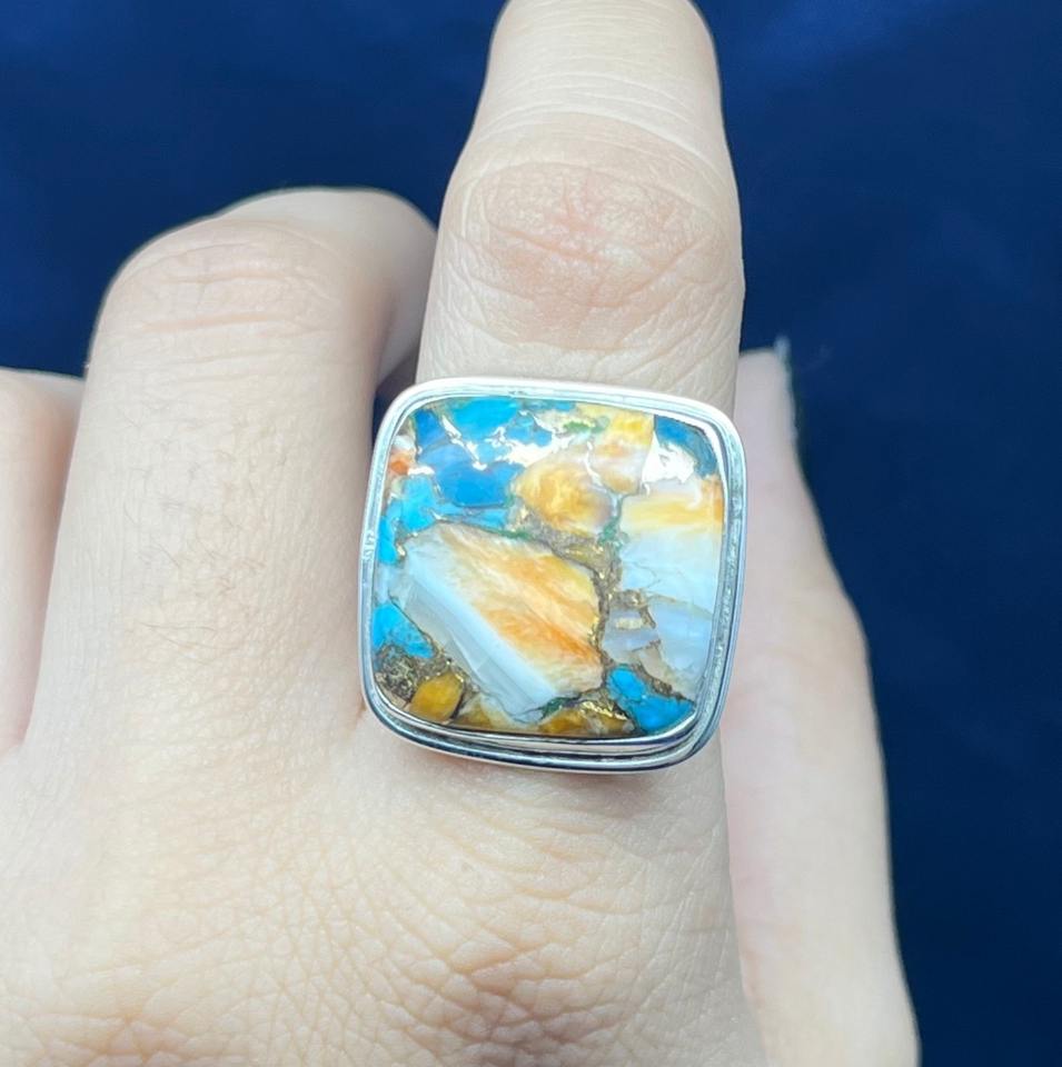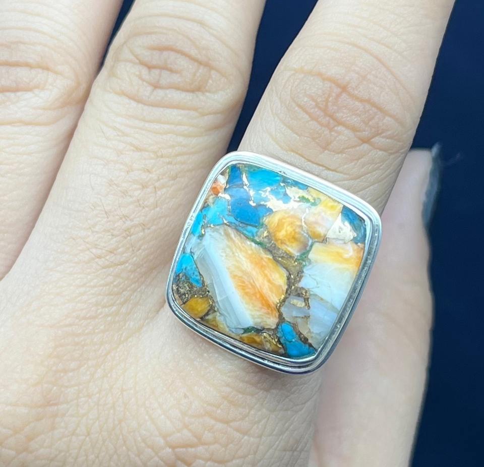 แหวนพลอยเทอร์ควอยส์หอยนางรมธรรมชาติทำมือสำหรับงานแต่งงานแบบลำลองสำหรับผู้หญิง925