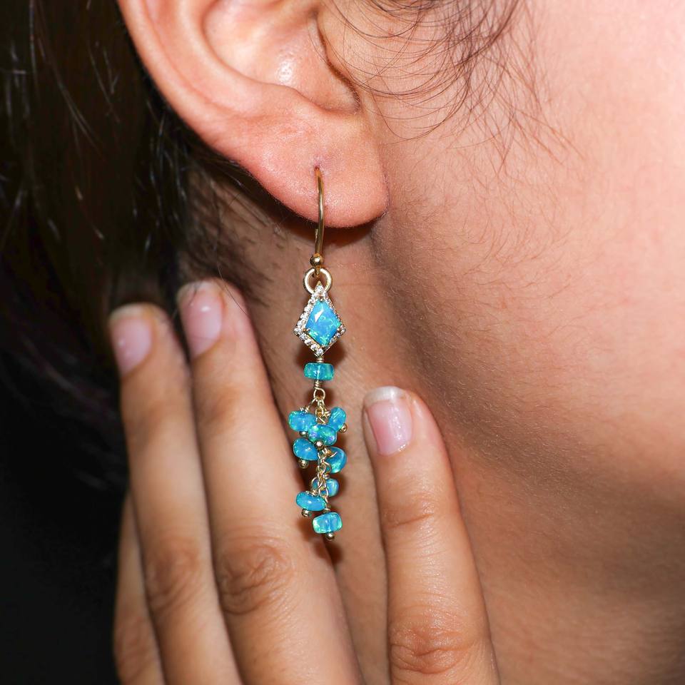 ต่างหูเงินแท้ 925 ประดับโอปอลพาราอิบาธรรมชาติ รูปทรงพวงประดับลูกปัด ห้อยระย้า เหมาะสำหรับเป็นของขวัญในโอกาสวันเกิด งานแต่งงาน หรืองานเลี้ยงสำหรับผู้หญิง