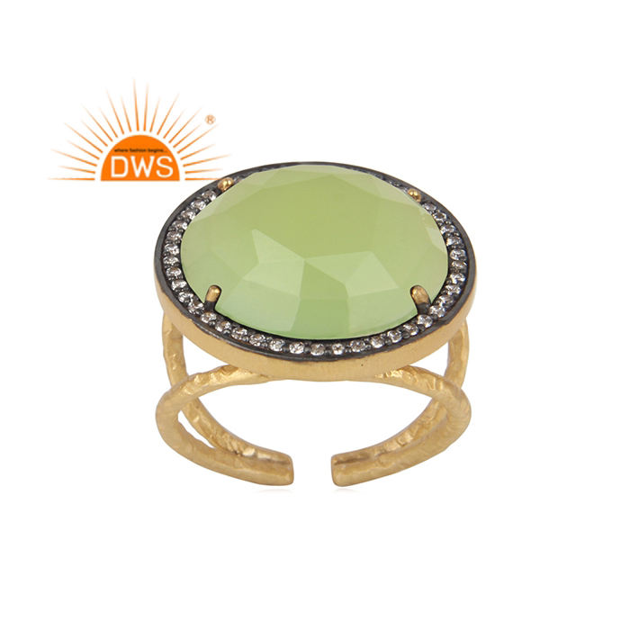 925สเตอร์ลิงเงินธรรมชาติ Prehnite Chalcedony และ CZ พลอยคำสั่งแหวนสำหรับผู้หญิงเครื่องประดับผู้ผลิต