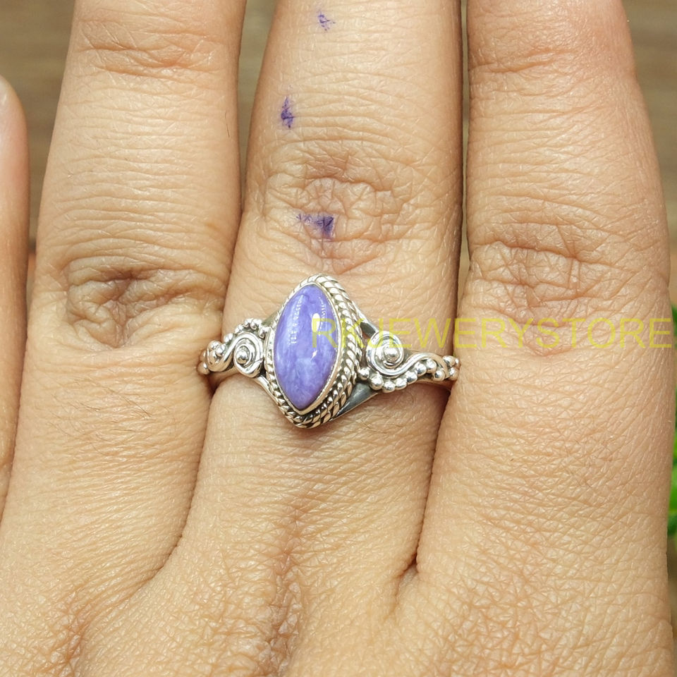 เงินแท้ 925 สีม่วงธรรมชาติ ชารอยต์ รูปทรงมาร์ควิส ทำด้วยมือ โบโฮ วินเทจ ฟิลิกรี แหวนผู้หญิง เครื่องประดับขายส่ง