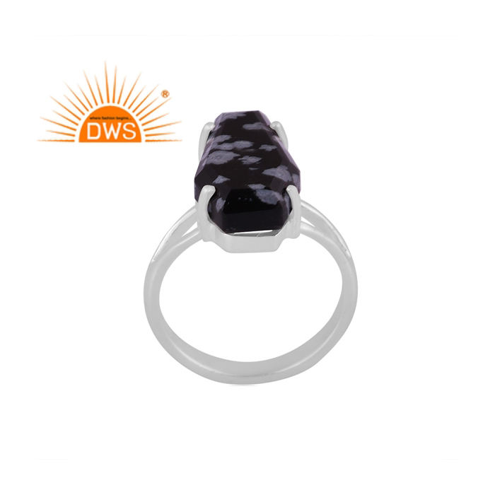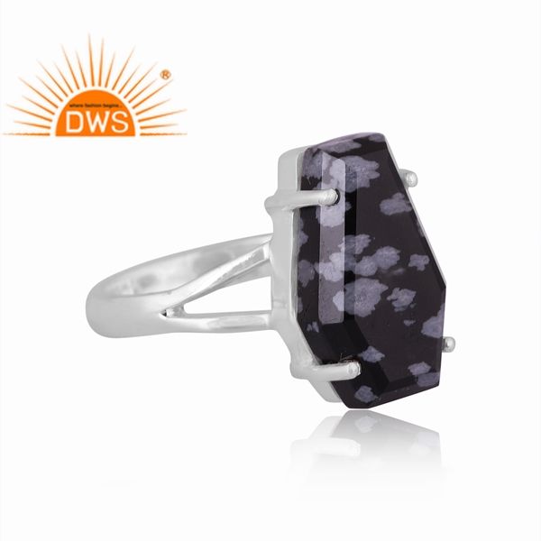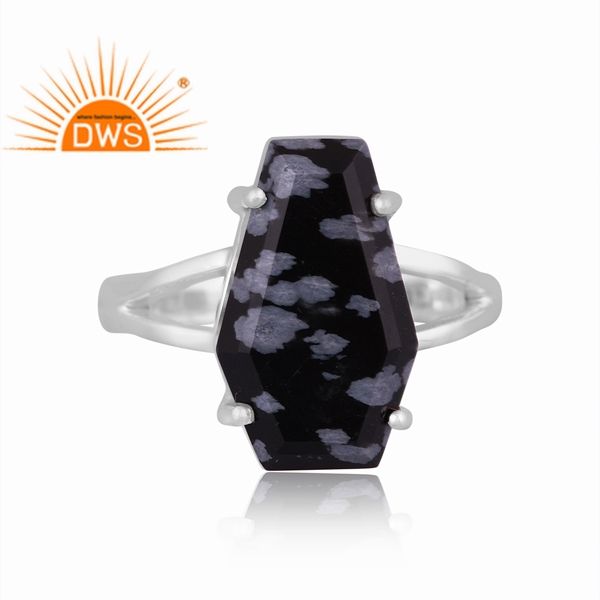 925สเตอร์ลิงเงินธรรมชาติเกล็ดหิมะอัญมณีออบซิเดียนโลงศพดีไซน์แบบวางซ้อนกันได้เครื่องประดับสำหรับผู้หญิงของขวัญสำหรับผู้หญิง