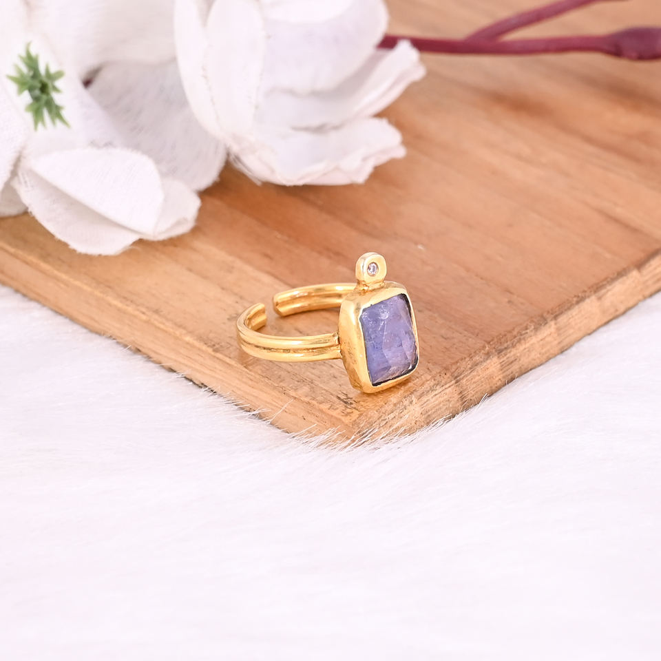 แหวนเงินแท้ 925 ประดับพลอยแทนซาไนต์ธรรมชาติ ชุบทองคำเหลือง ดีไซน์คลาสสิก สวยงาม ปรับขนาดได้ เหมาะสำหรับเป็นเครื่องประดับสำหรับเพื่อนเจ้าสาว