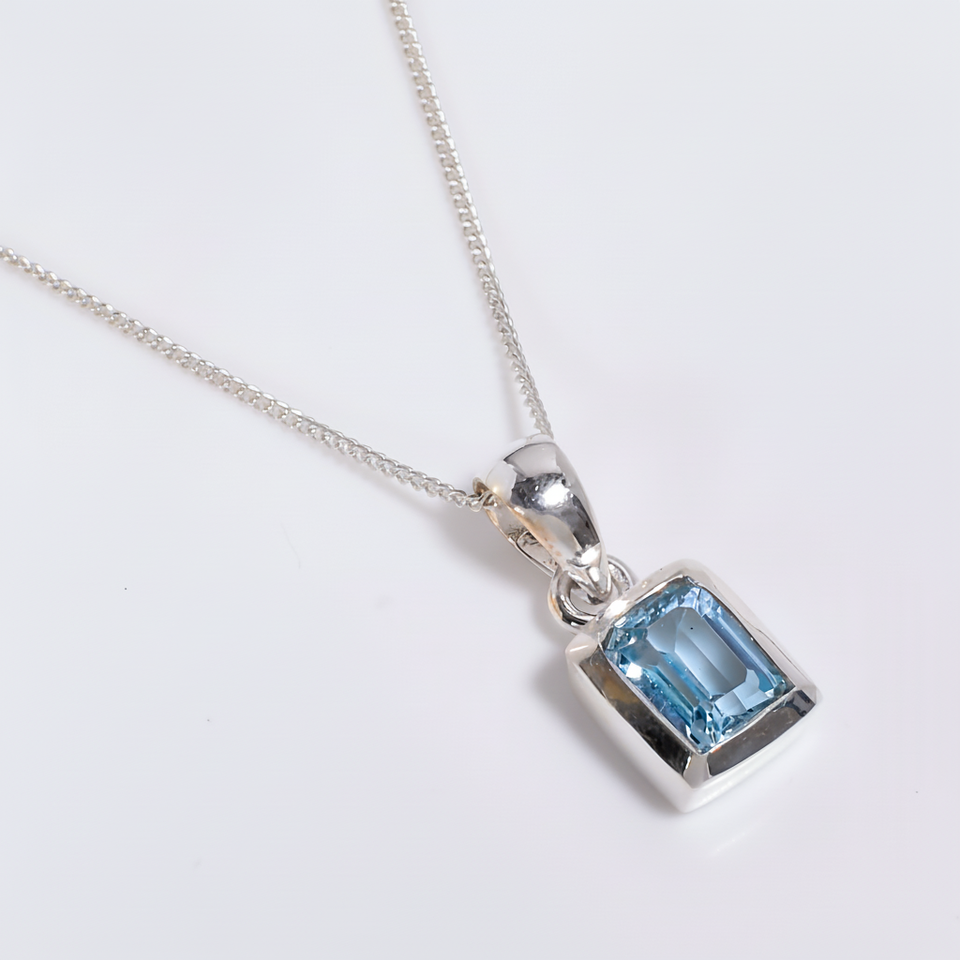 สร้อยคอเงินสเตอริ่ง925เครื่องประดับอัญมณีสีฟ้าโทแพซมรกตตัดเป็น925ทำด้วยมือ