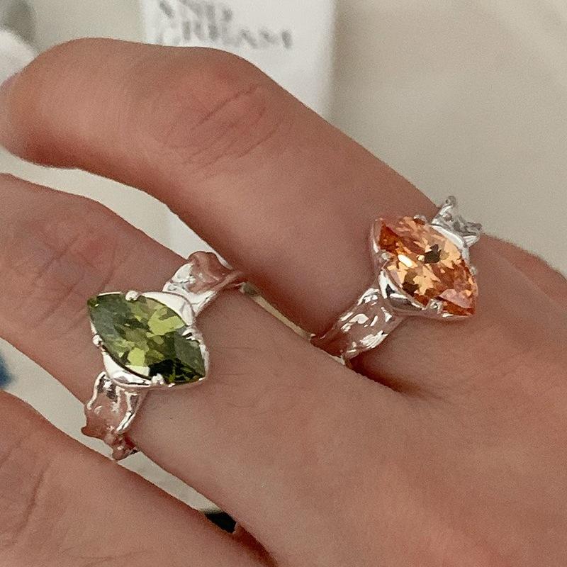 แหวนเงินแท้ 925 ประดับเพทายสีเขียวมะกอก ดีไซน์เรียบง่าย ทันสมัย ไม่ซ้ำใคร รูปทรงตัวเลข